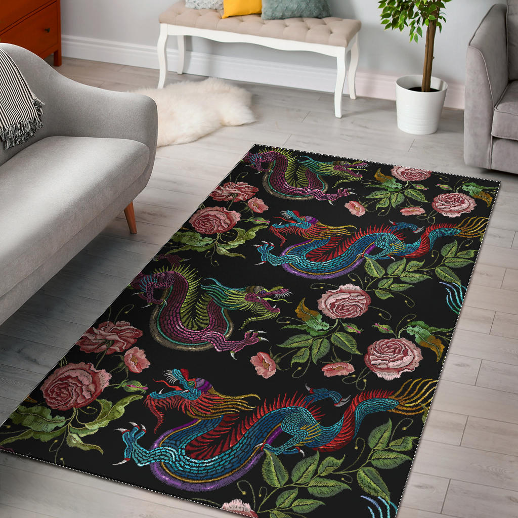 Dragons flower pattern Area Rug is a uniqued design and limited item. It made to order, hand printed, and sewn with love in our factory.
