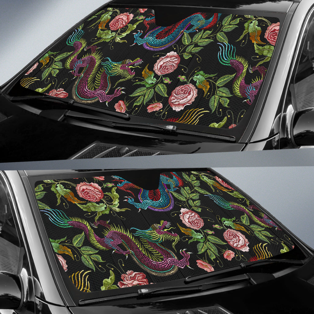 Dragons flower pattern Car Sun Shade is a uniqued design and limited item. It made to order, hand printed, and sewn with love in our factory.