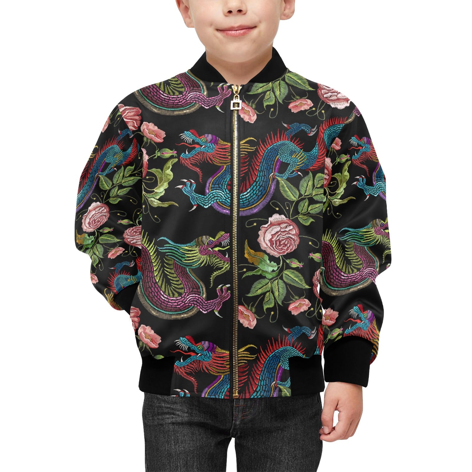 Dragons flower pattern Kids' Boys' Girls' Bomber Jacket