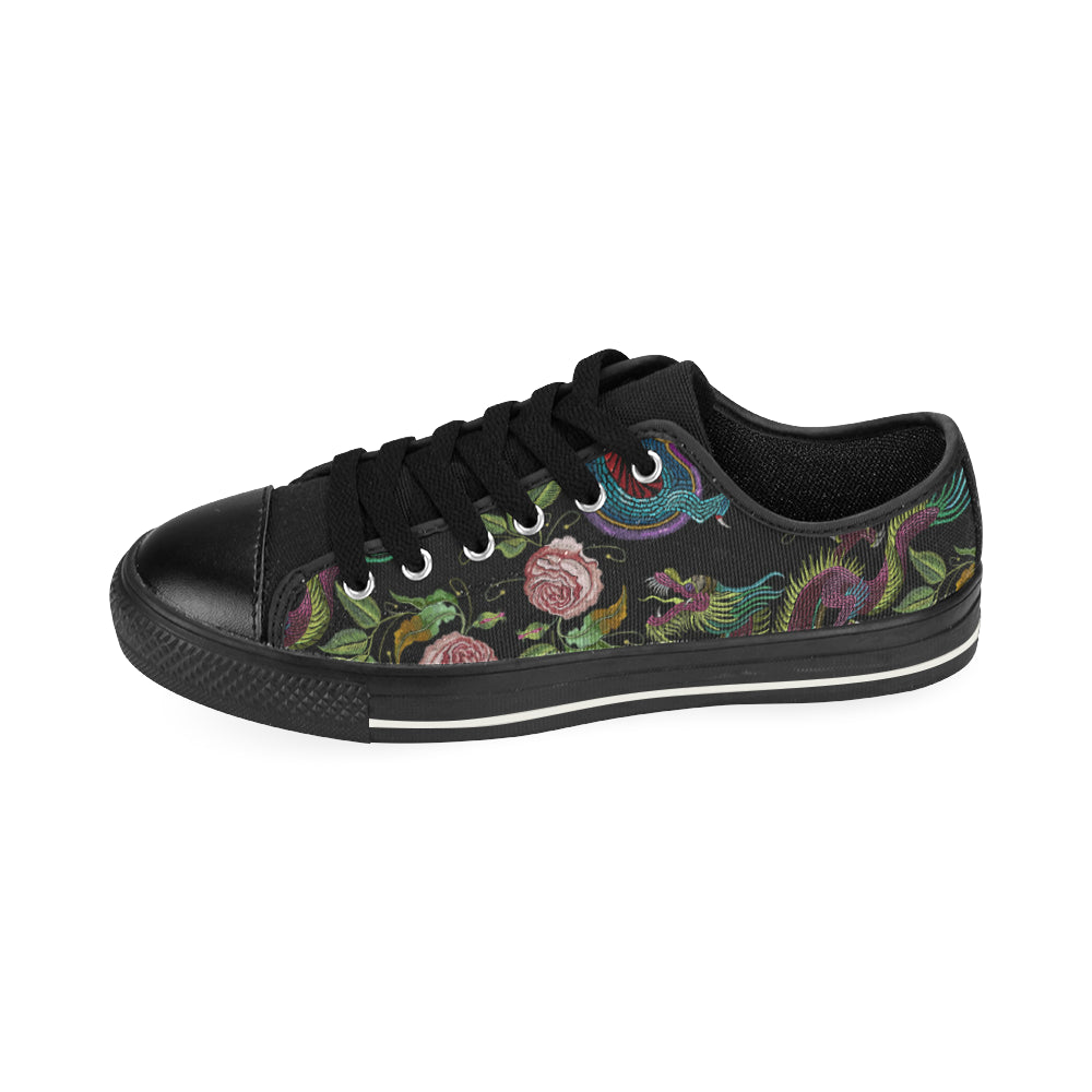 Dragons flower pattern Men's Low Top Canvas Shoes Black