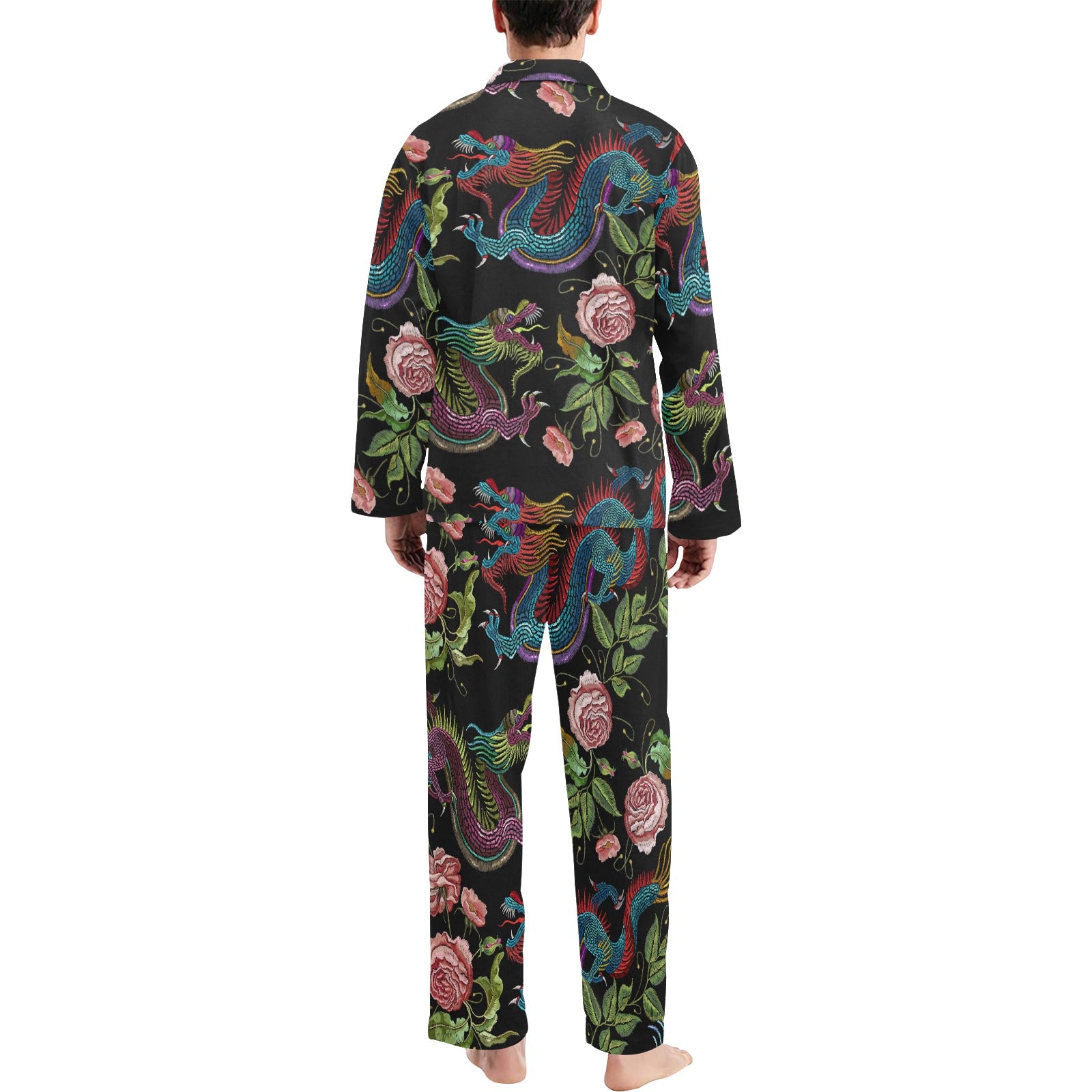 Dragons flower pattern Men's Long Pajama Set