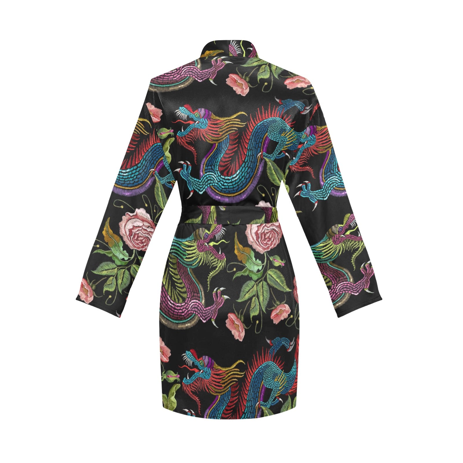 Dragons flower pattern Women's Long Sleeve Belted Night Robe