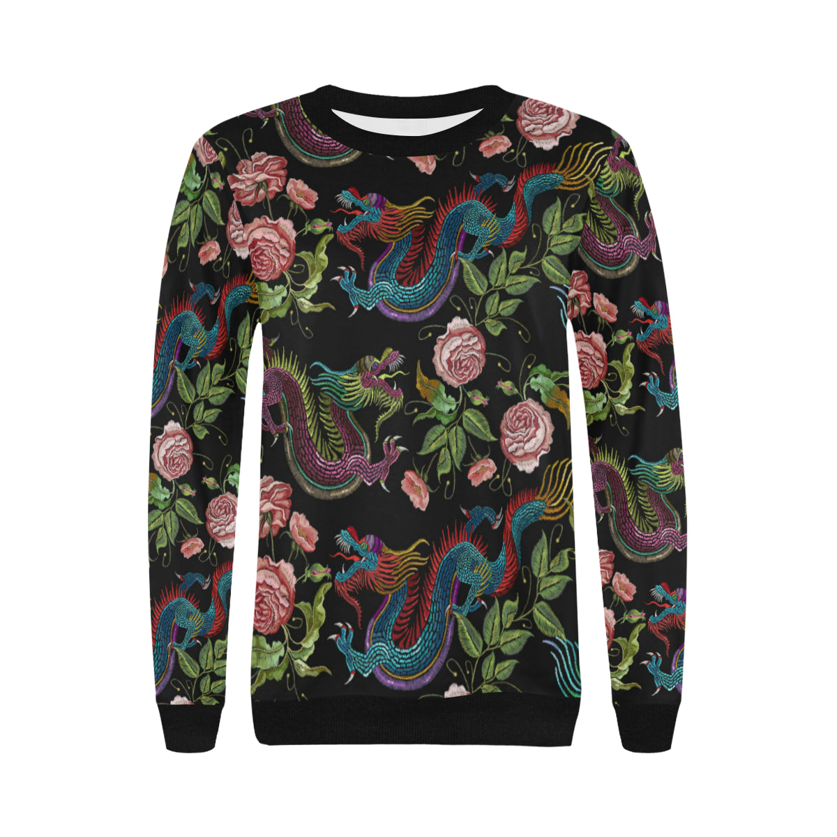 Dragons flower pattern Women's Crew Neck Sweatshirt is a uniqued design and limited item. It made to order, hand printed, and sewn with love in our factory.