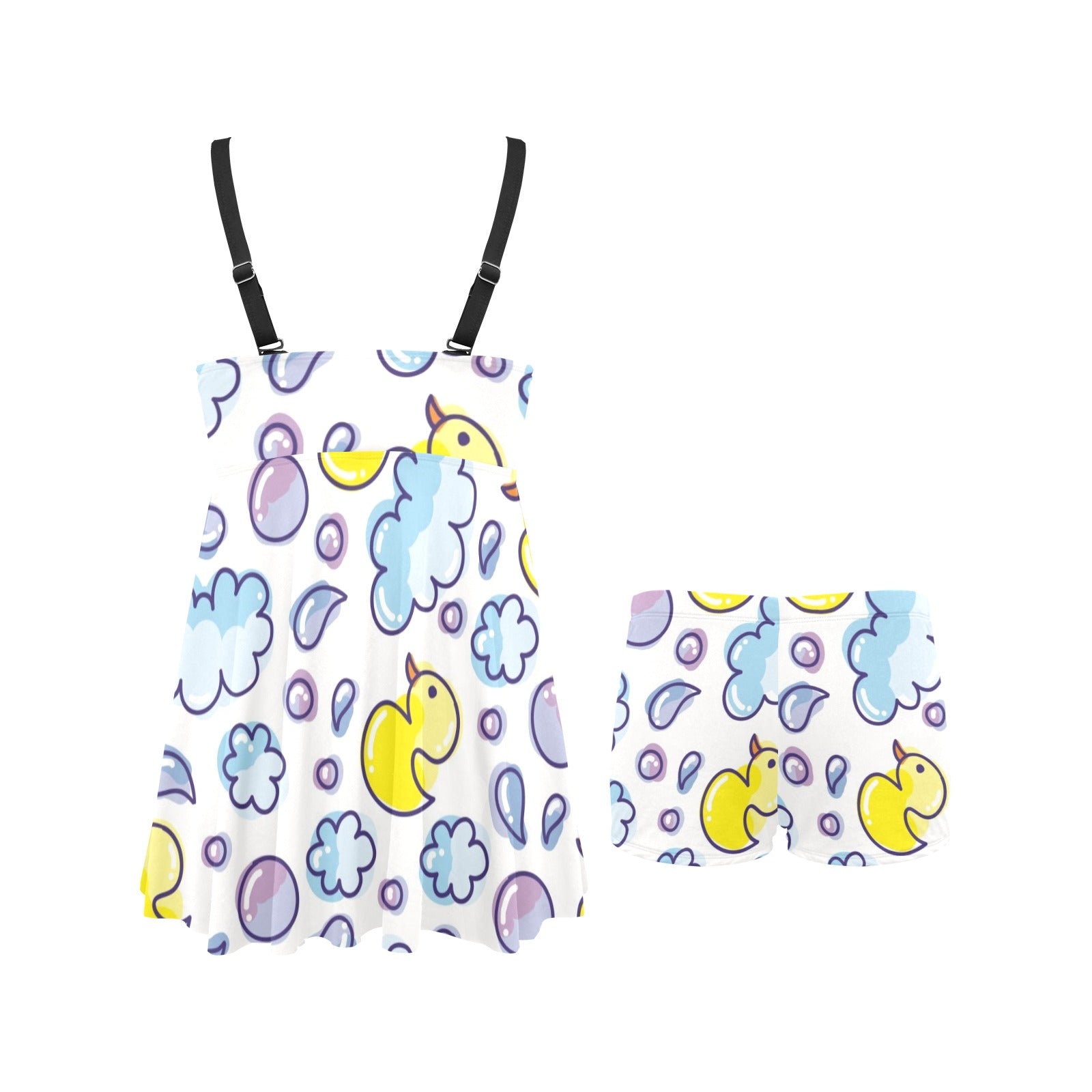 Duck Pattern Print Design 01 Chest Sexy Pleated Two Piece Swim Dress