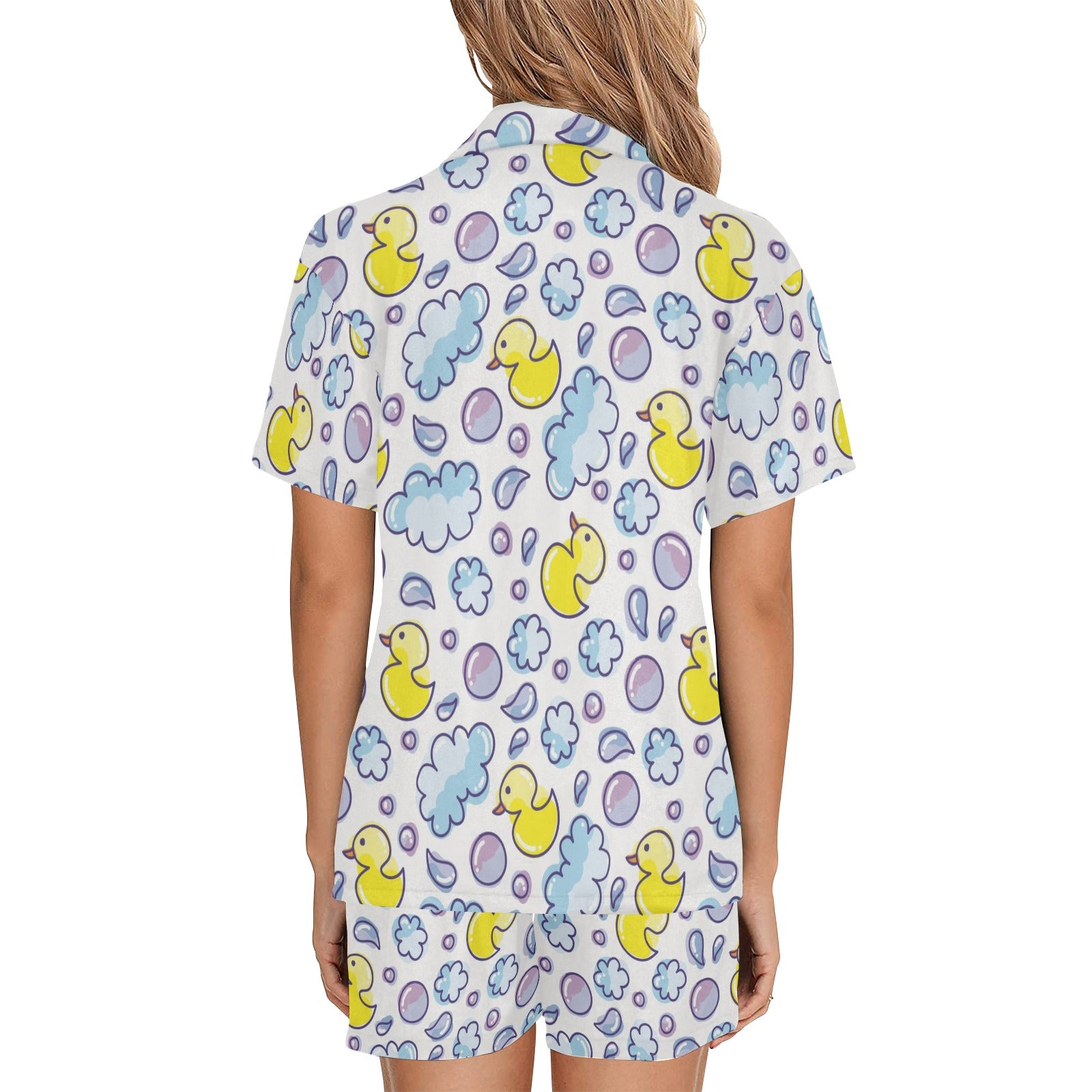 Duck Pattern Print Design 01 Women's V-Neck Short Pajama Set