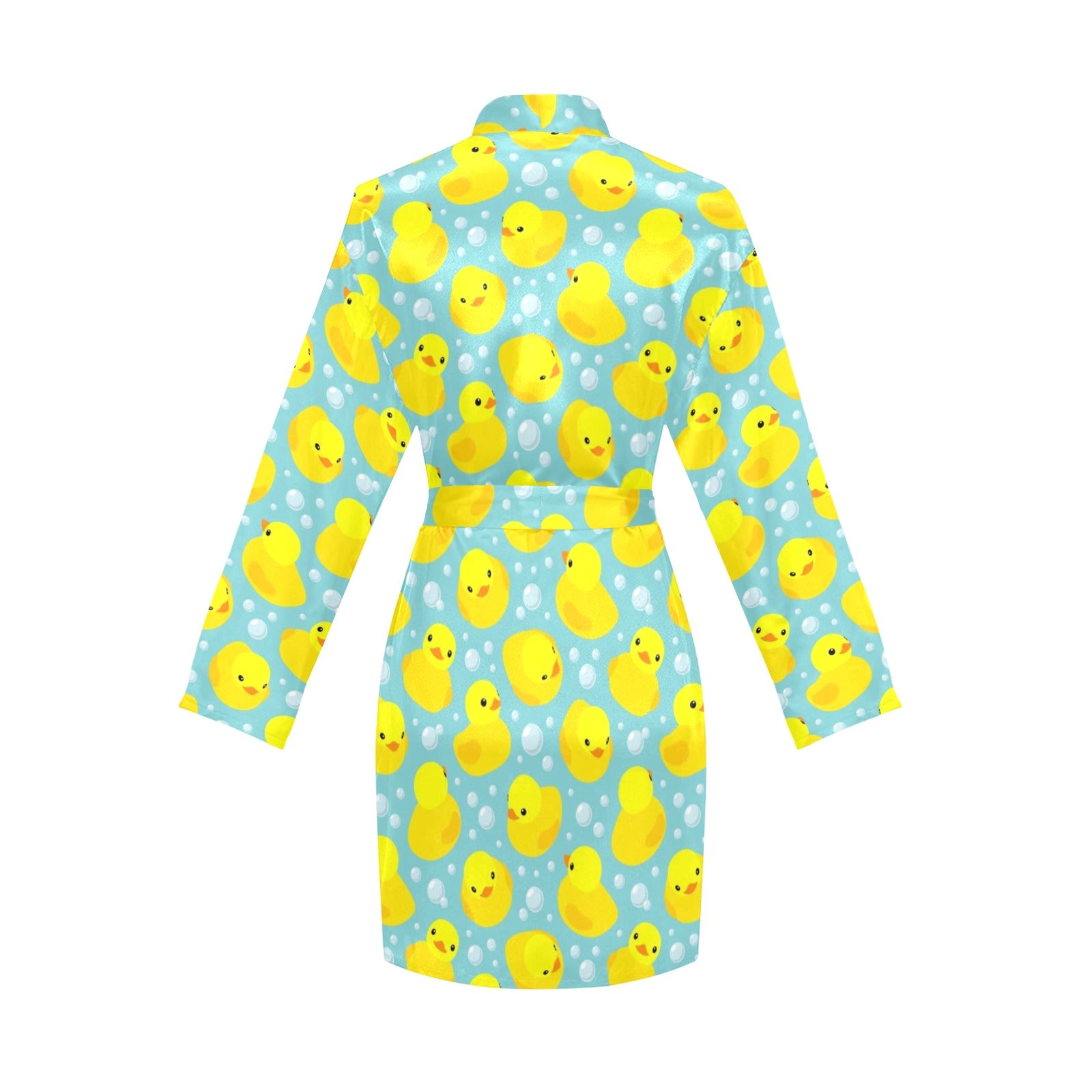 Duck Pattern Print Design 03 Women's Long Sleeve Belted Night Robe