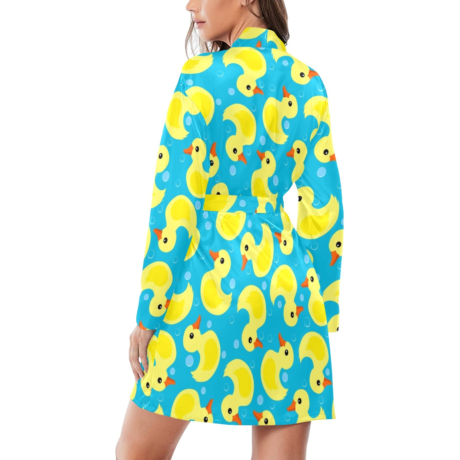 Duck Pattern Print Design 04 Women's Long Sleeve Belted Night Robe