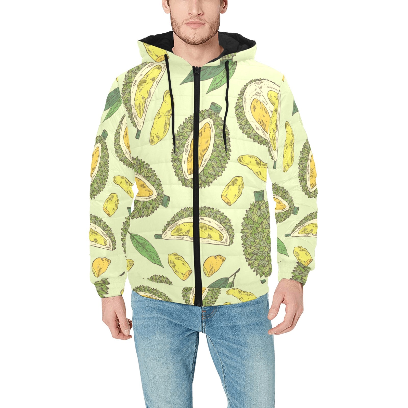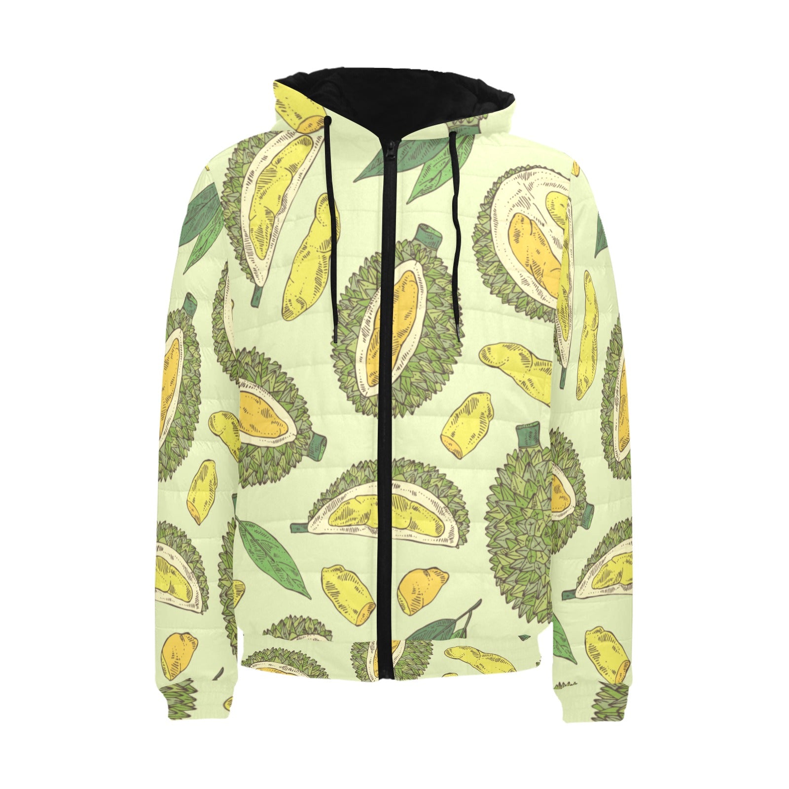 Durian leaves pattern background Men's Padded Hooded Jacket