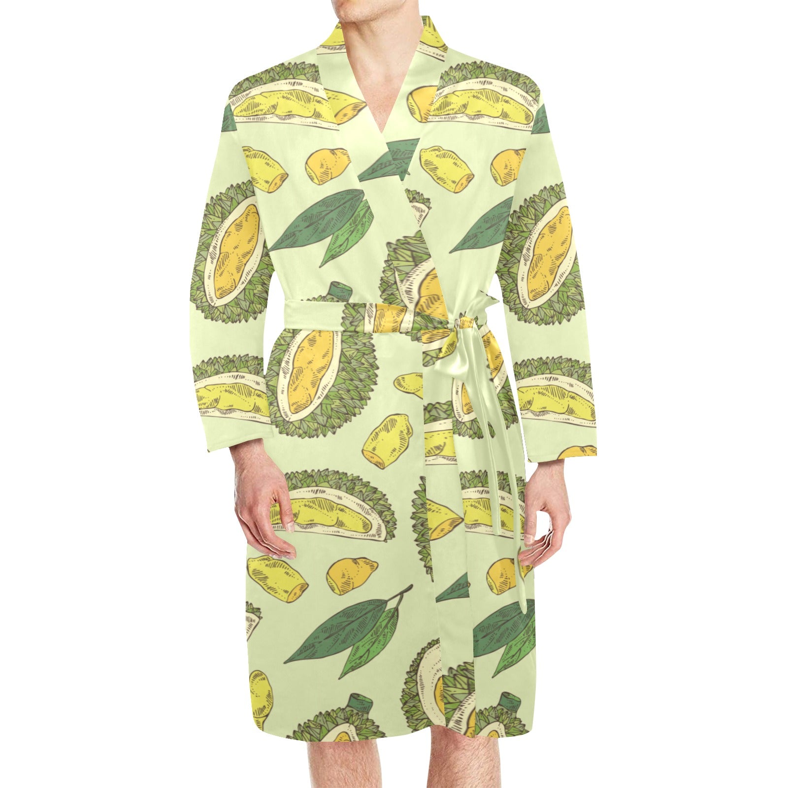 Durian leaves pattern background Men's Long Sleeve Belted Night Robe