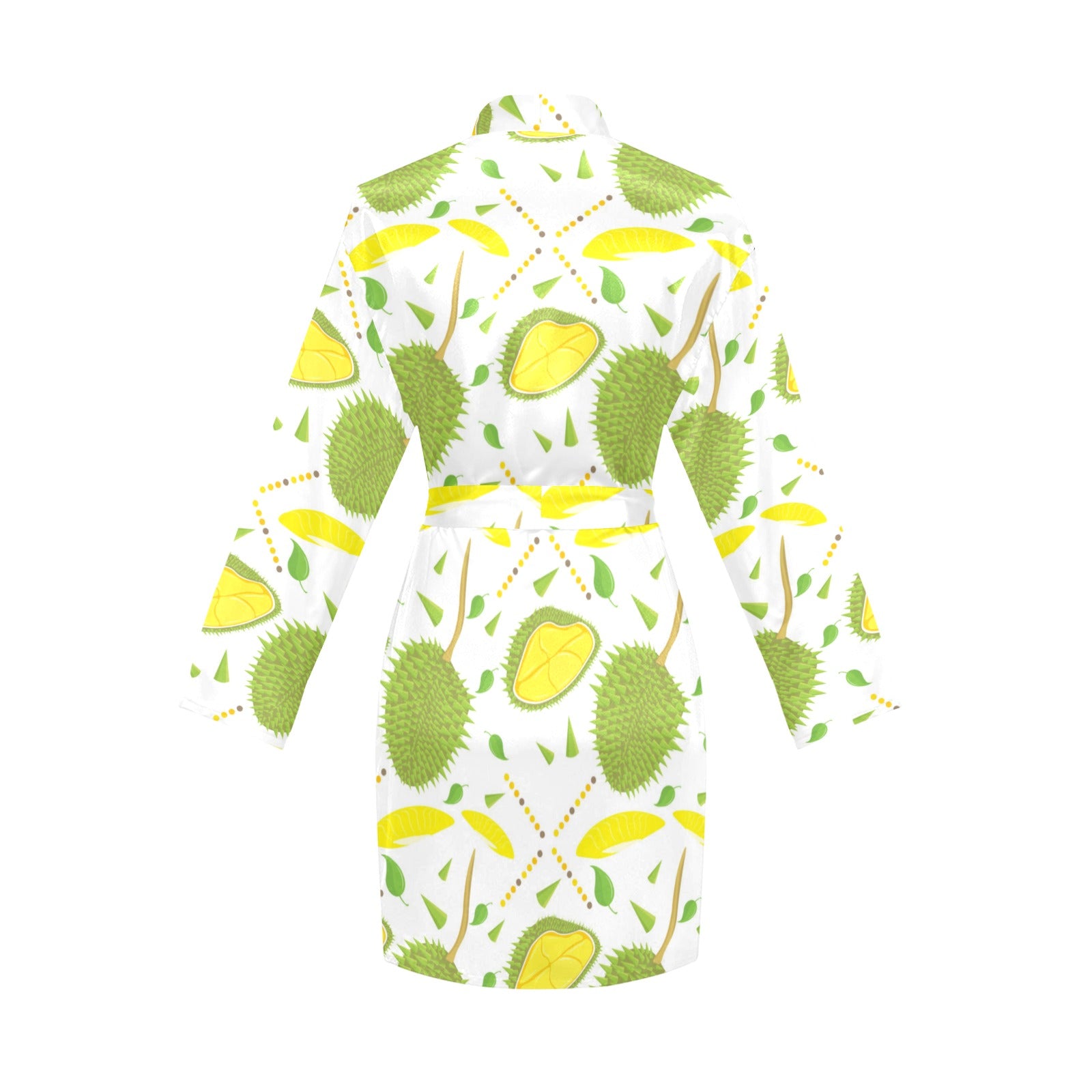 Durian pattern background Women's Long Sleeve Belted Night Robe