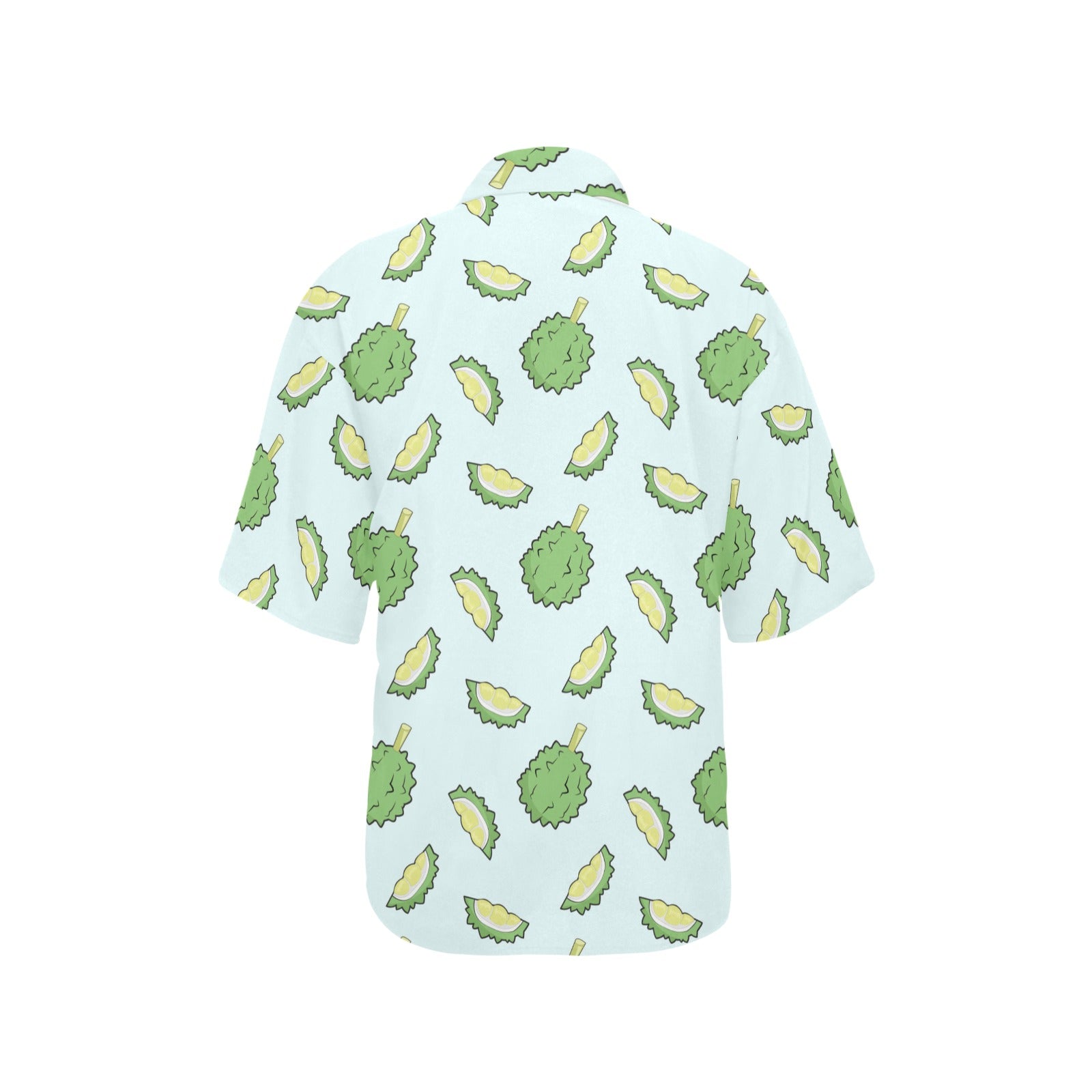 Durian pattern blue background Women's All Over Print Hawaiian Shirt