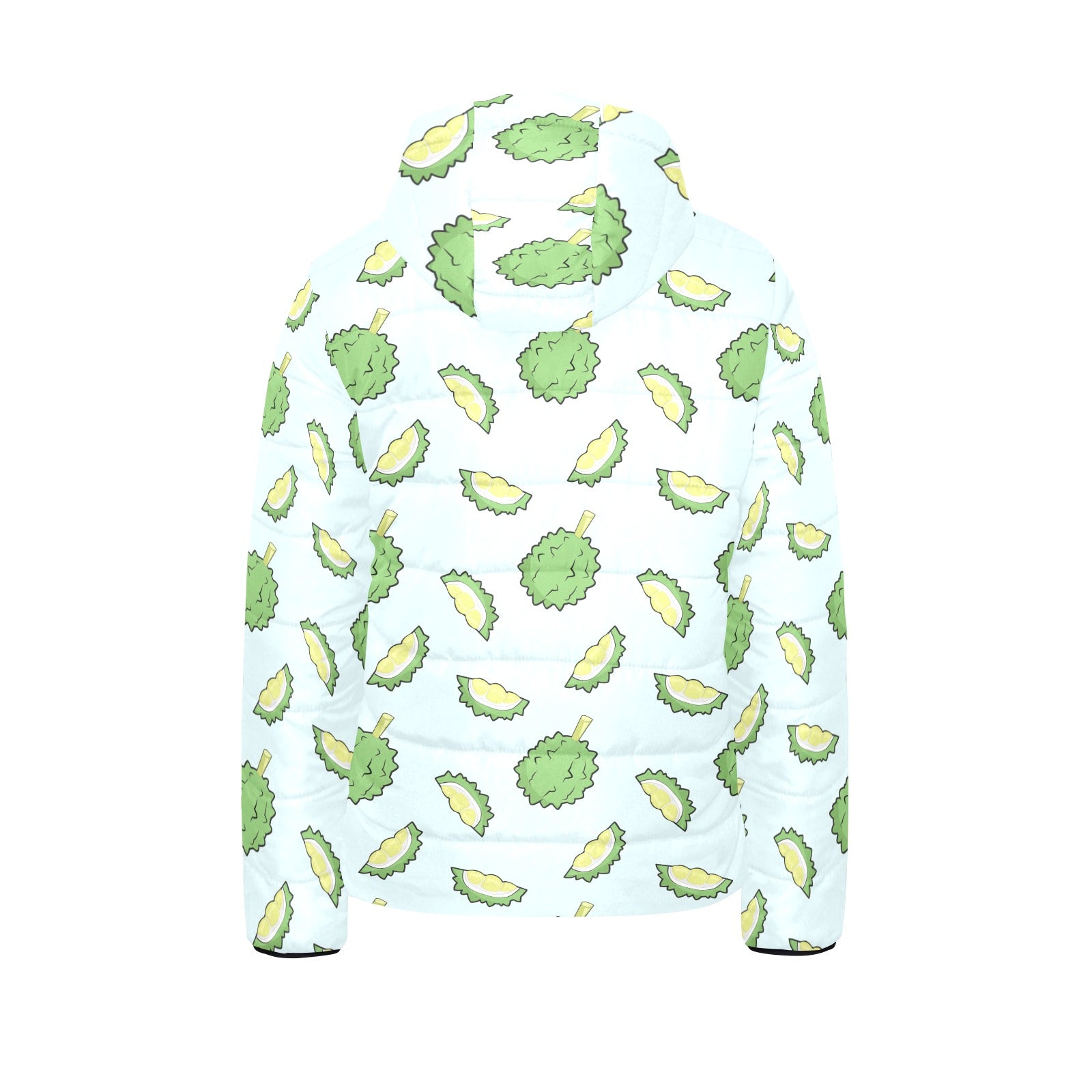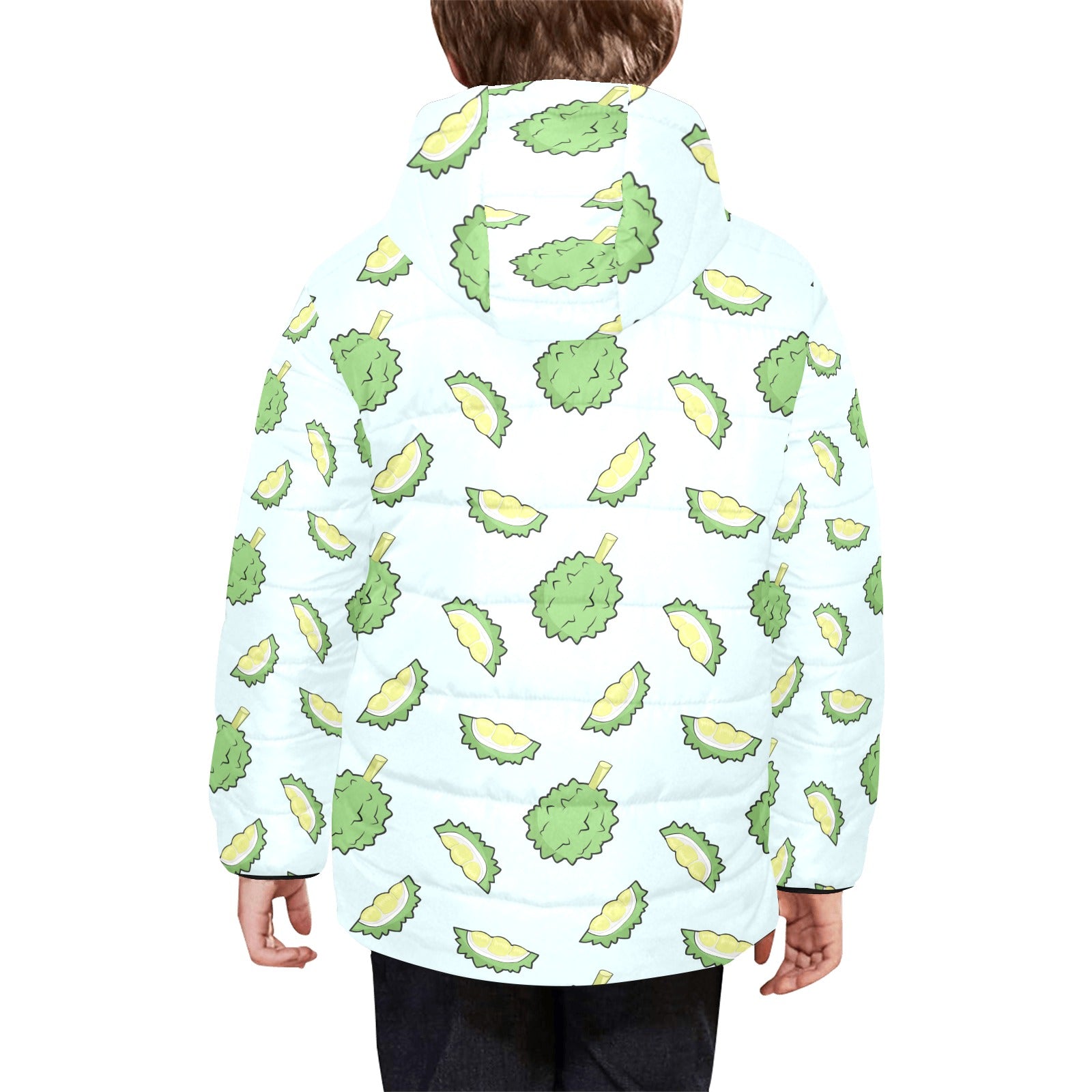 Durian pattern blue background Kids' Boys' Girls' Padded Hooded Jacket