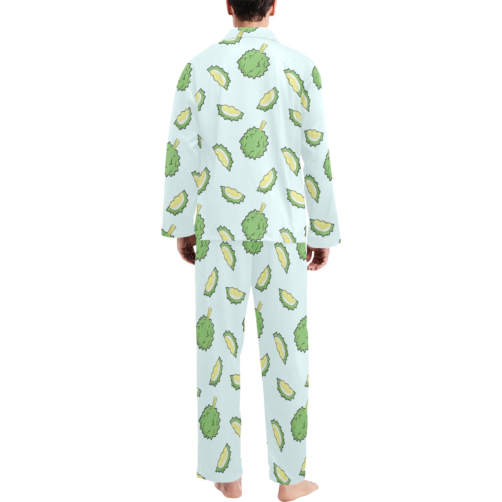 Durian pattern blue background Men's Long Pajama Set