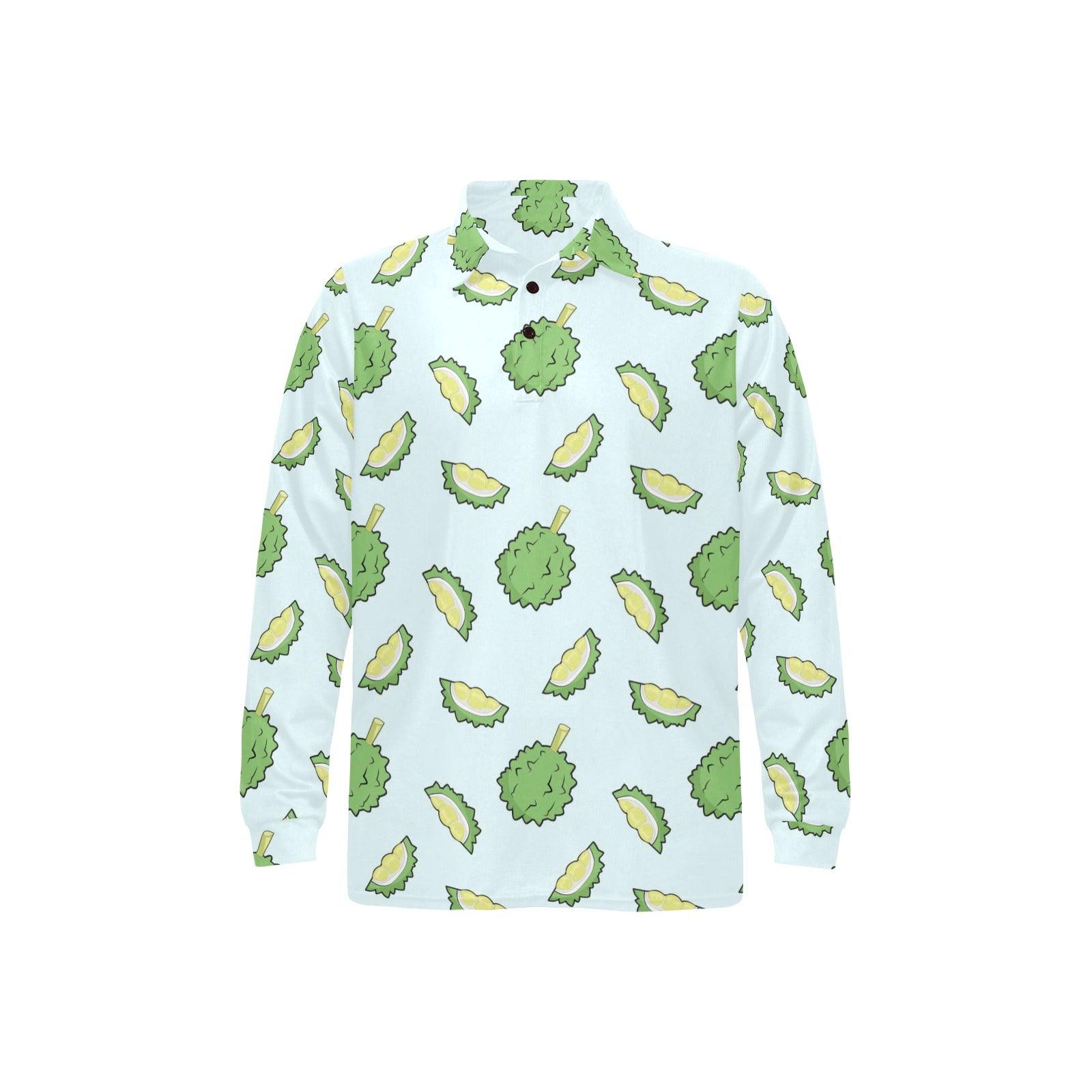 Durian pattern blue background Men's Long Sleeve Polo Shirt