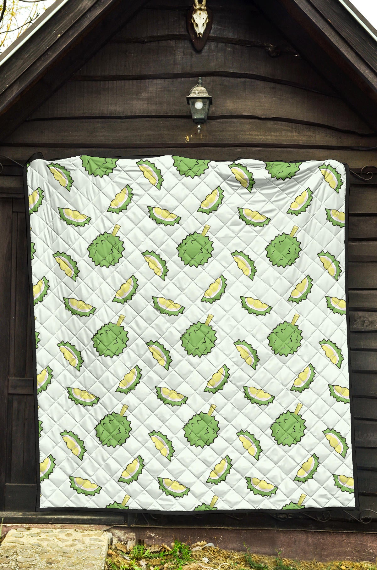 Durian Pattern Blue Background Premium Quilt is a uniqued design and limited item. It made to order, hand printed, and sewn with love in our factory.