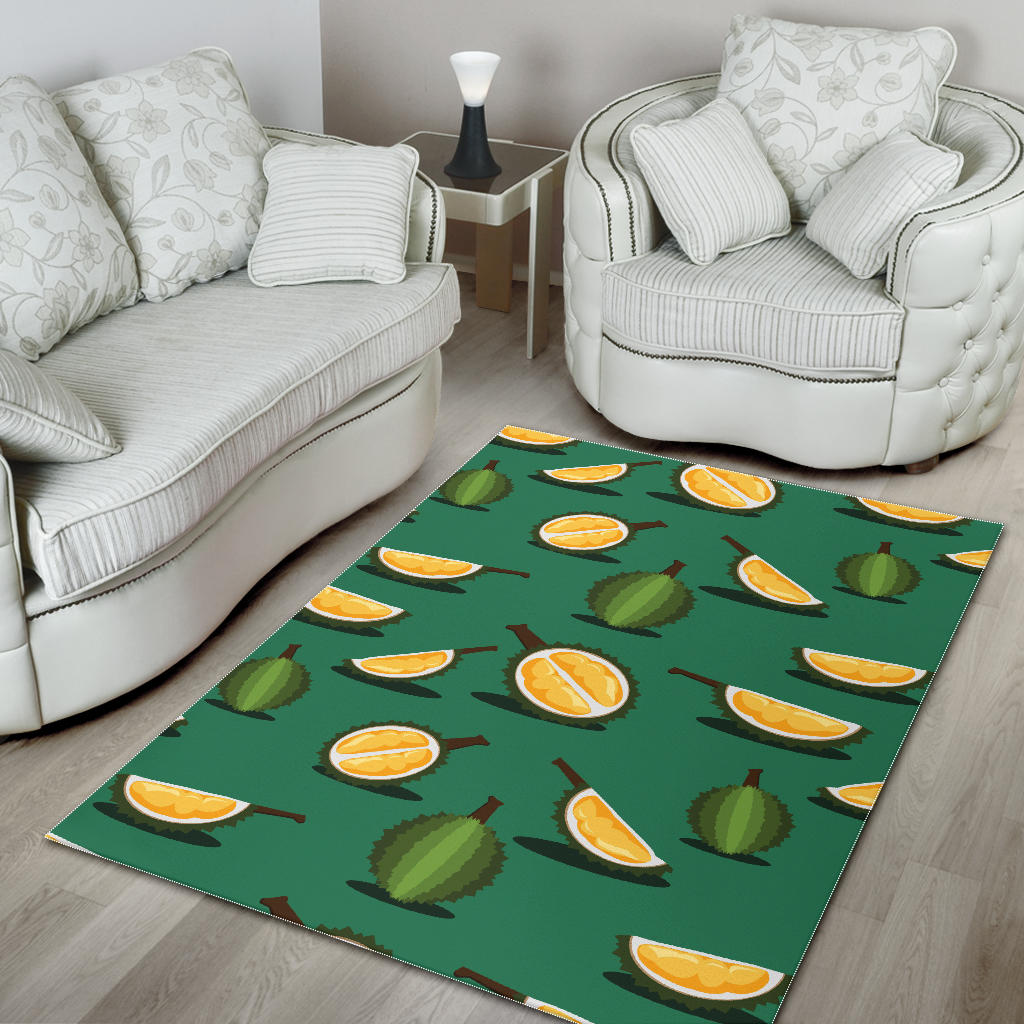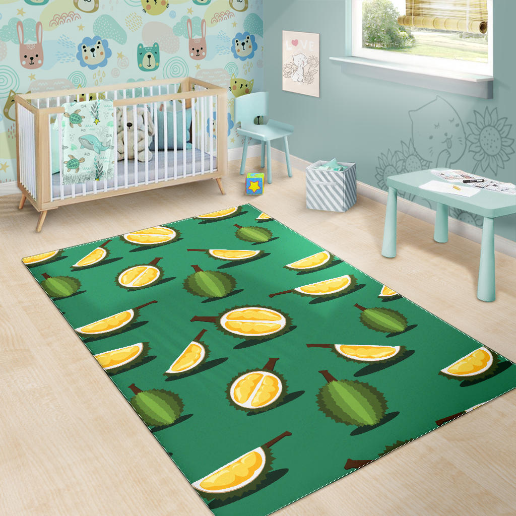 Durian pattern green background Area Rug is a uniqued design and limited item. It made to order, hand printed, and sewn with love in our factory.