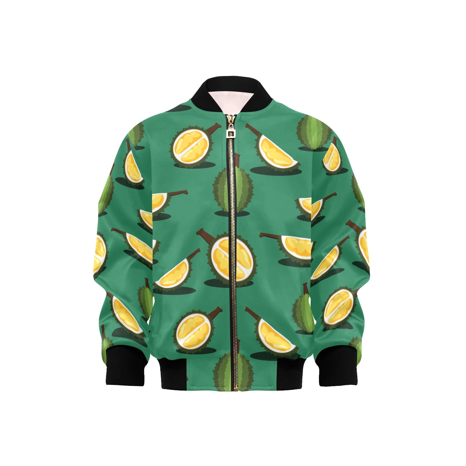 Durian pattern green background Kids' Boys' Girls' Bomber Jacket