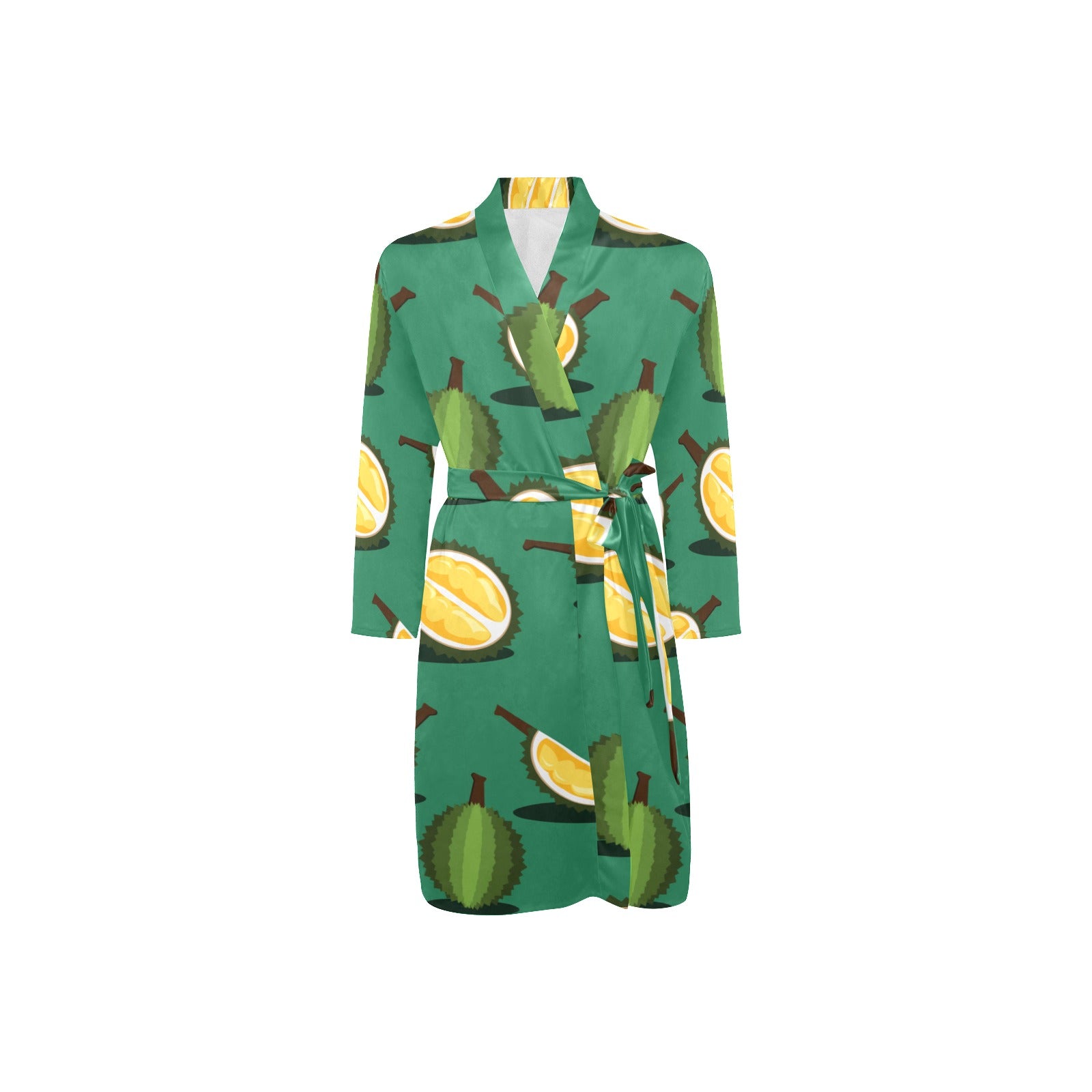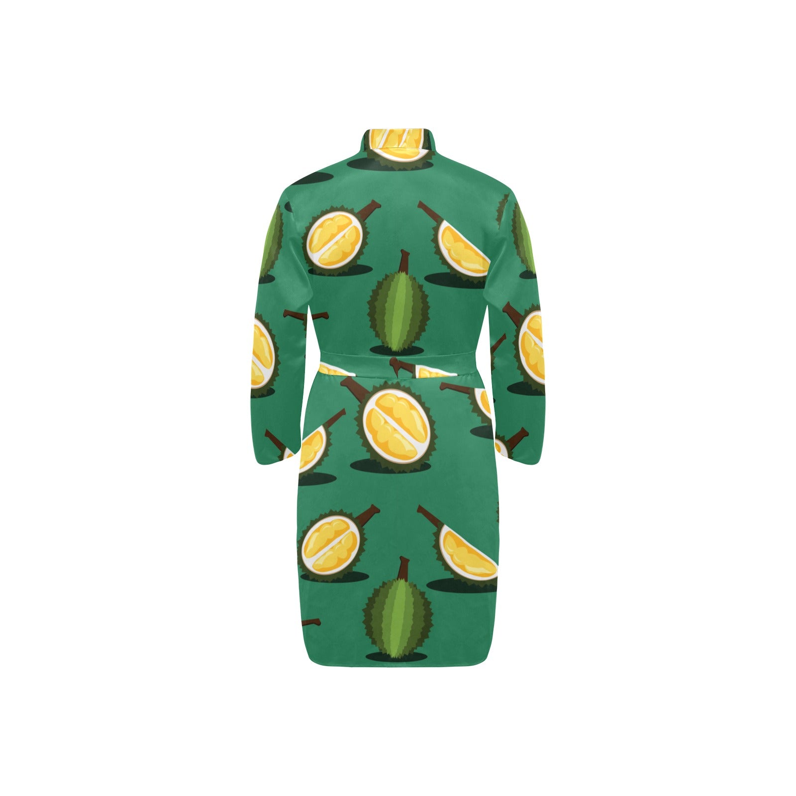 Durian pattern green background Men's Long Sleeve Belted Night Robe