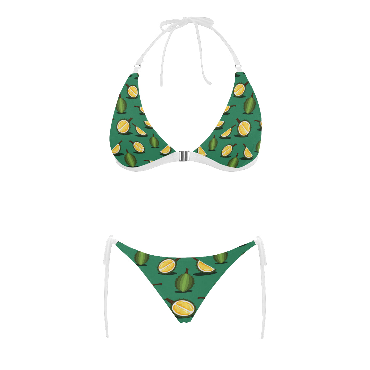 Durian pattern green background Sexy Bikinis Two-Piece Swimsuits are uniqued design and limited item. It made to order, hand printed, and sewn with love in our factory.