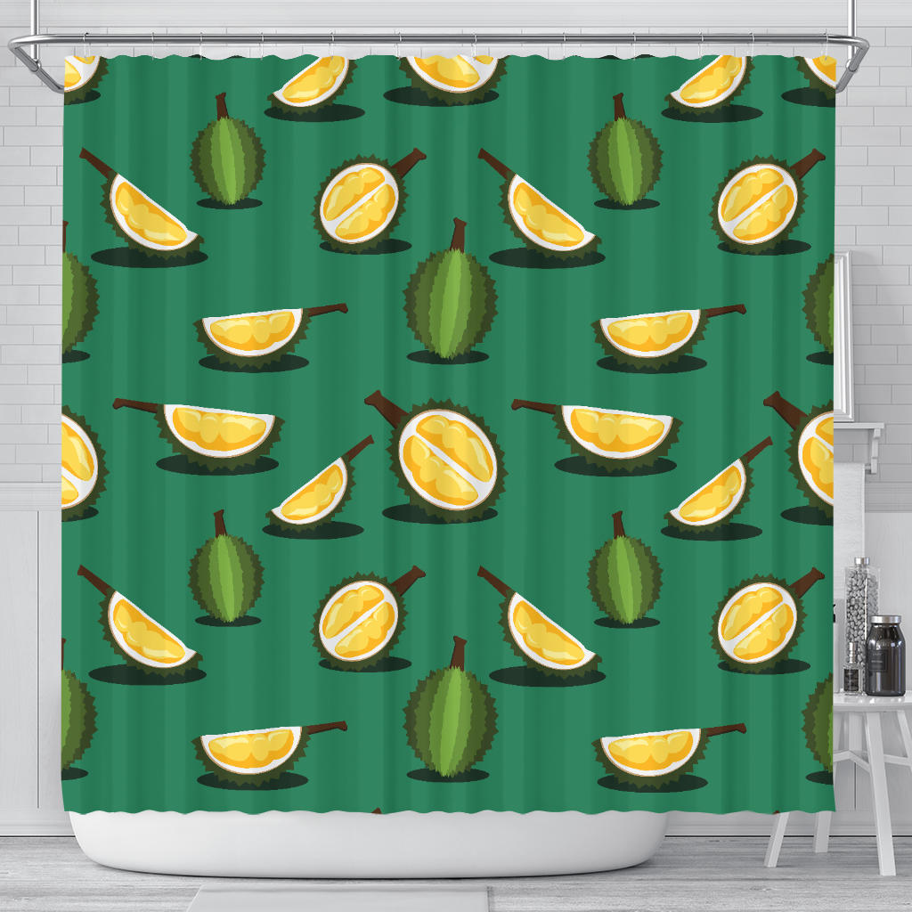 Durian Pattern Green Background Shower Curtain Fulfilled In US