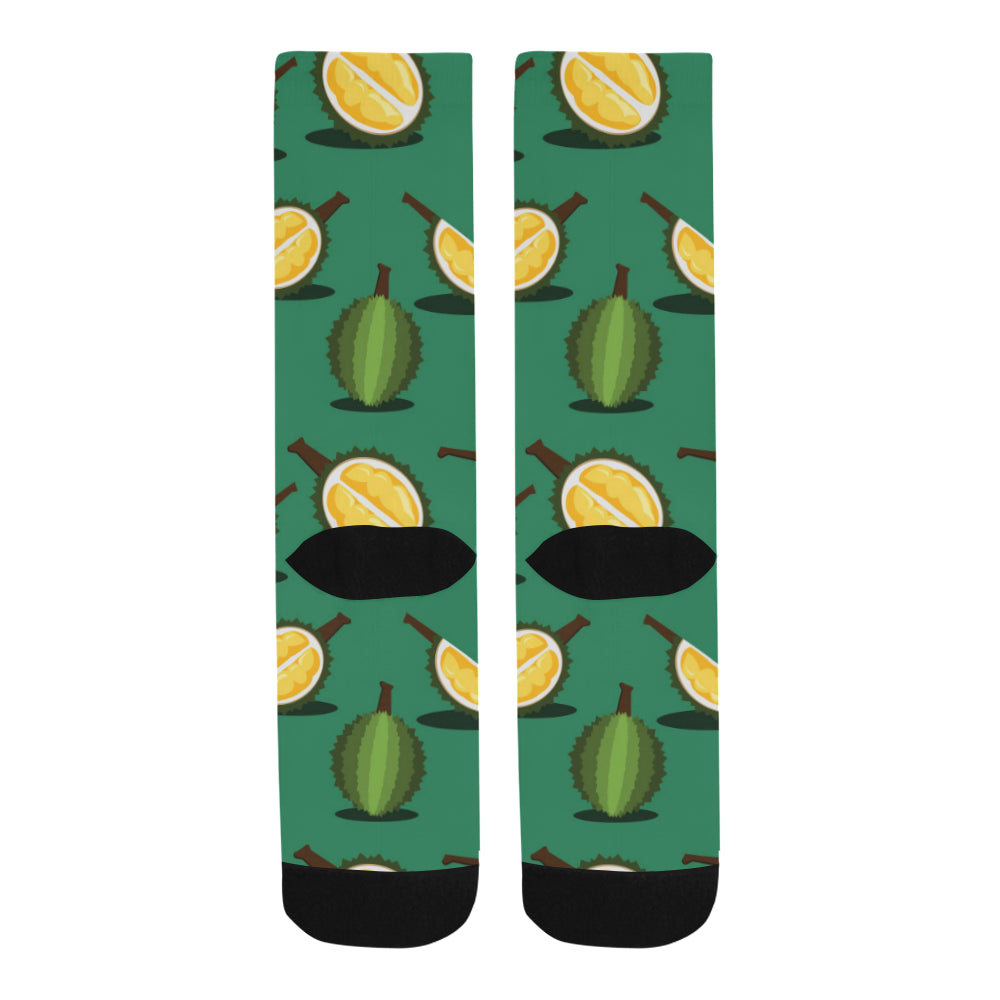 Durian pattern green background Crew Socks are uniqued design and limited item. It made to order, hand printed, and sewn with love in our factory.