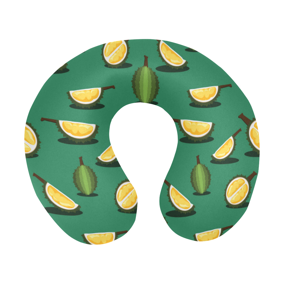 Durian pattern green background U-Shaped Travel Neck Pillow