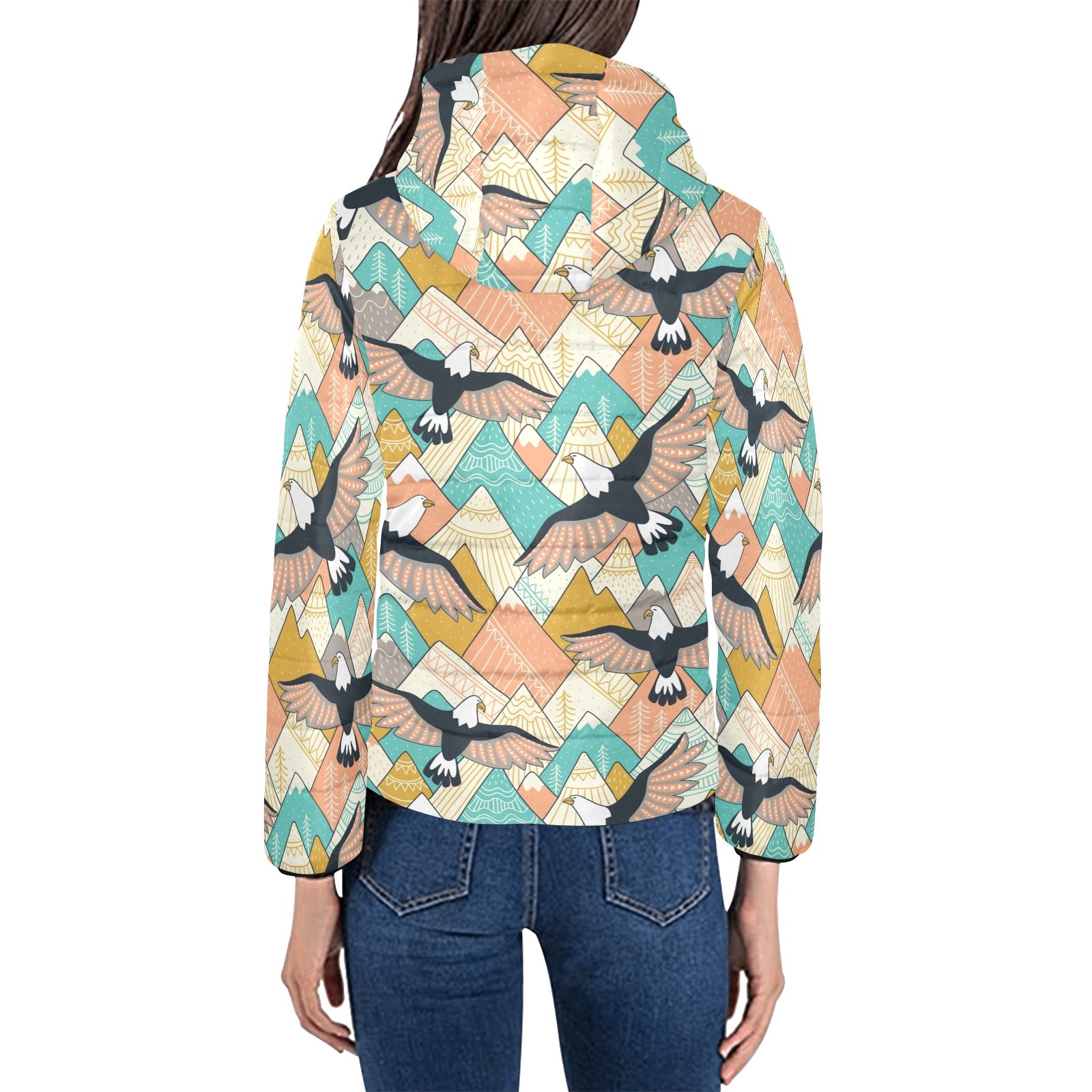 Eagle Pattern Print Design 02 Women's Padded Hooded Jacket