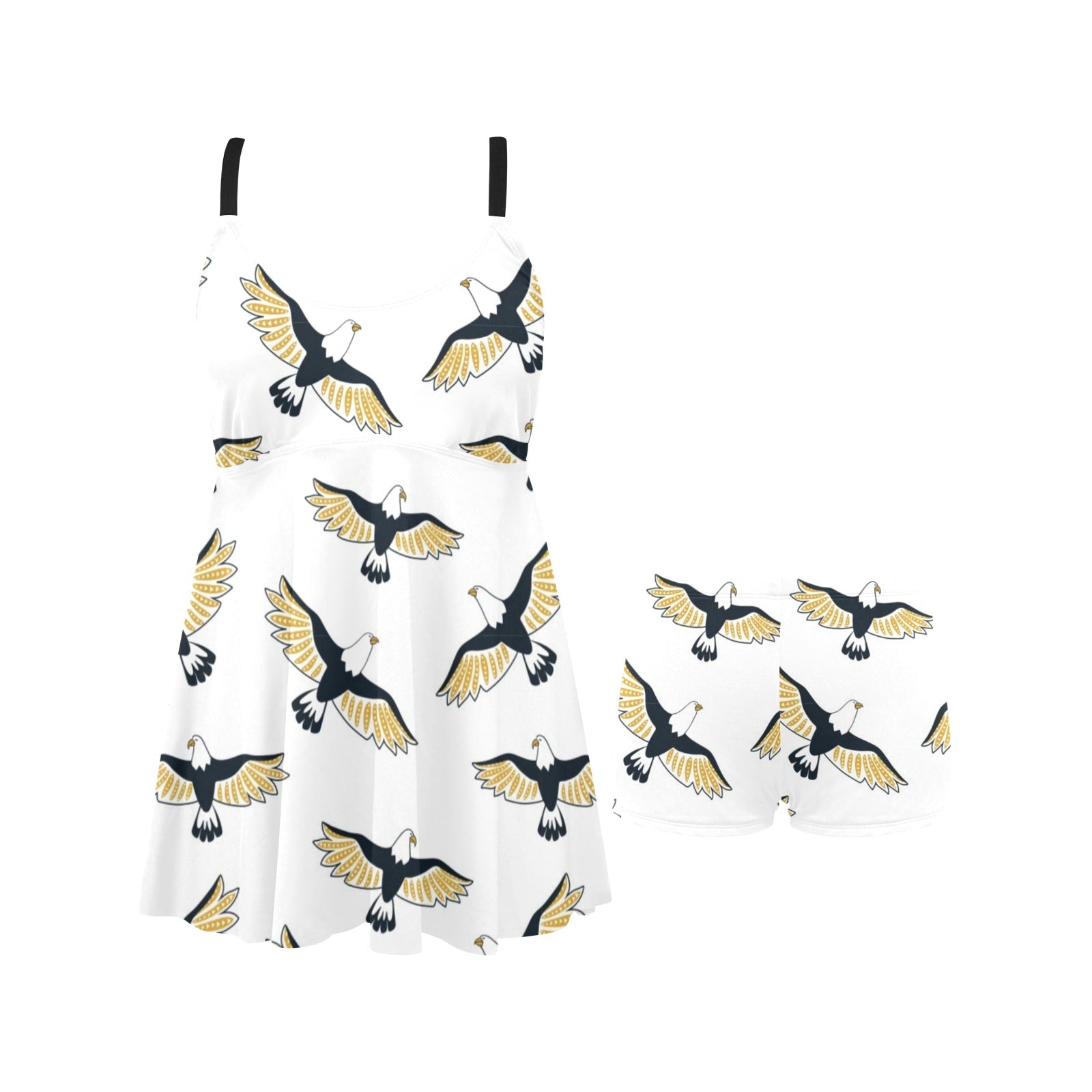 Eagle Pattern Print Design 03 Chest Sexy Pleated Two Piece Swim Dress