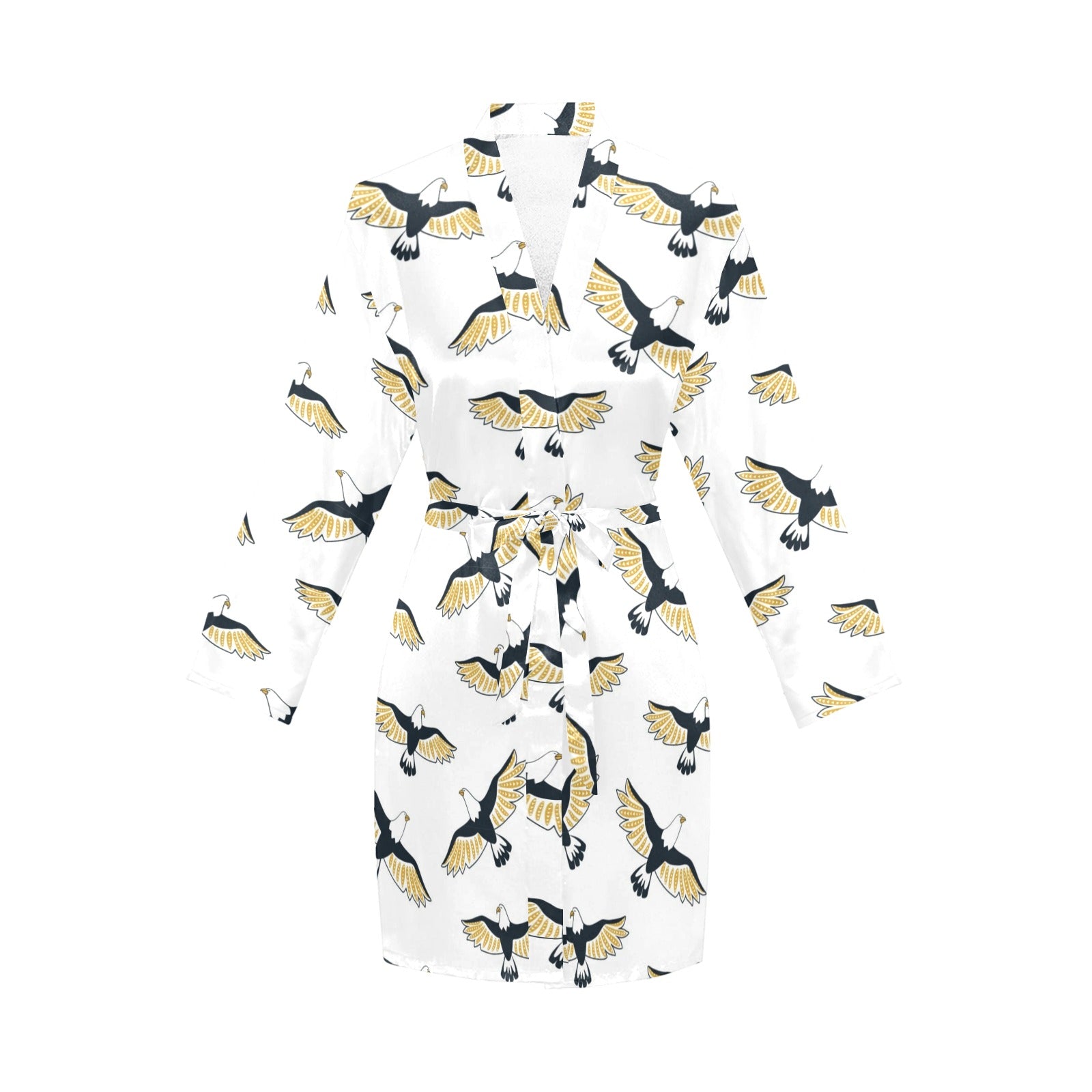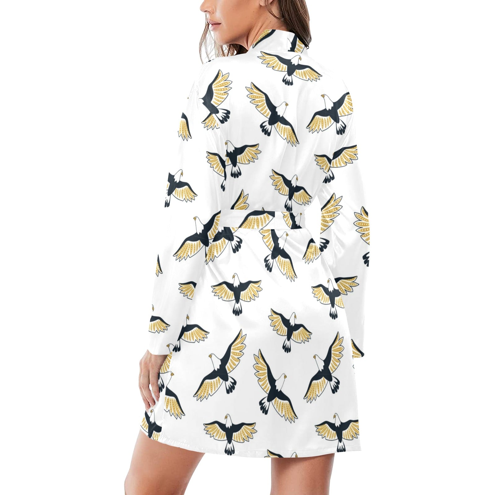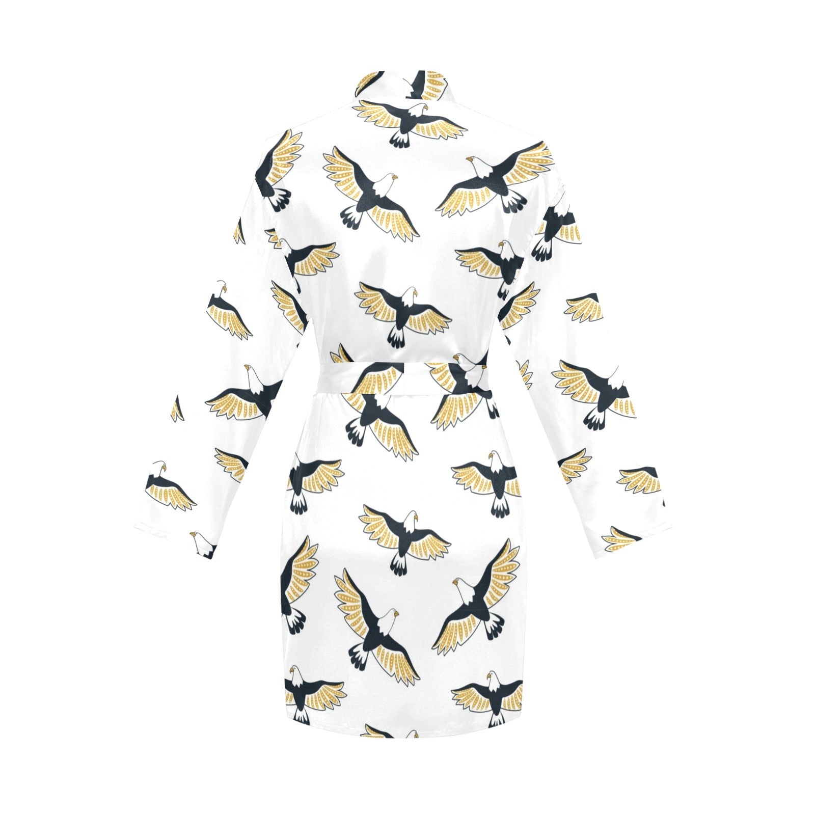 Eagle Pattern Print Design 03 Women's Long Sleeve Belted Night Robe