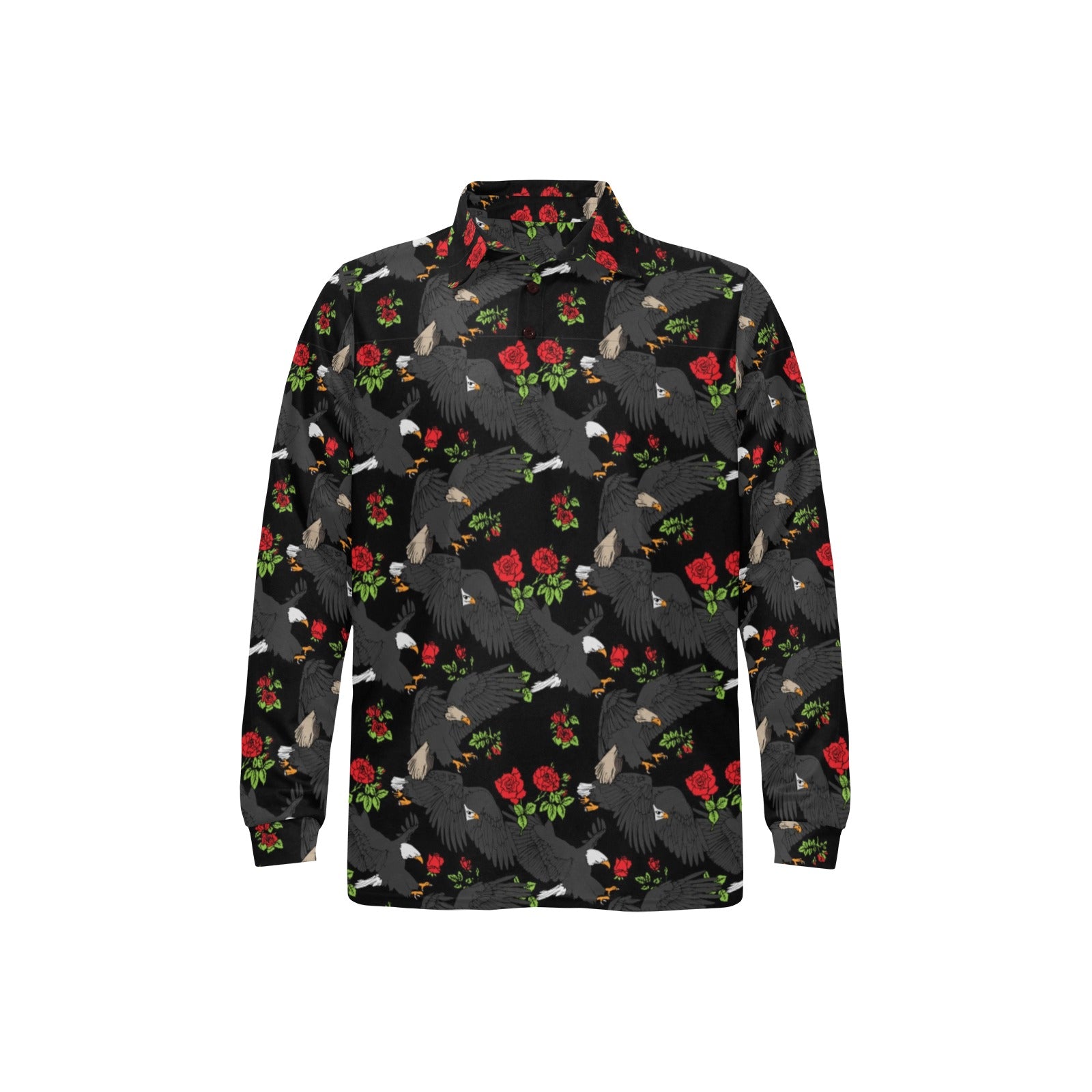 Eagle Pattern Print Design 04 Men's Long Sleeve Polo Shirt