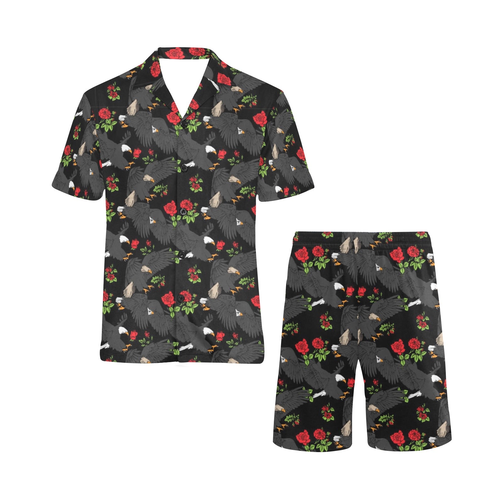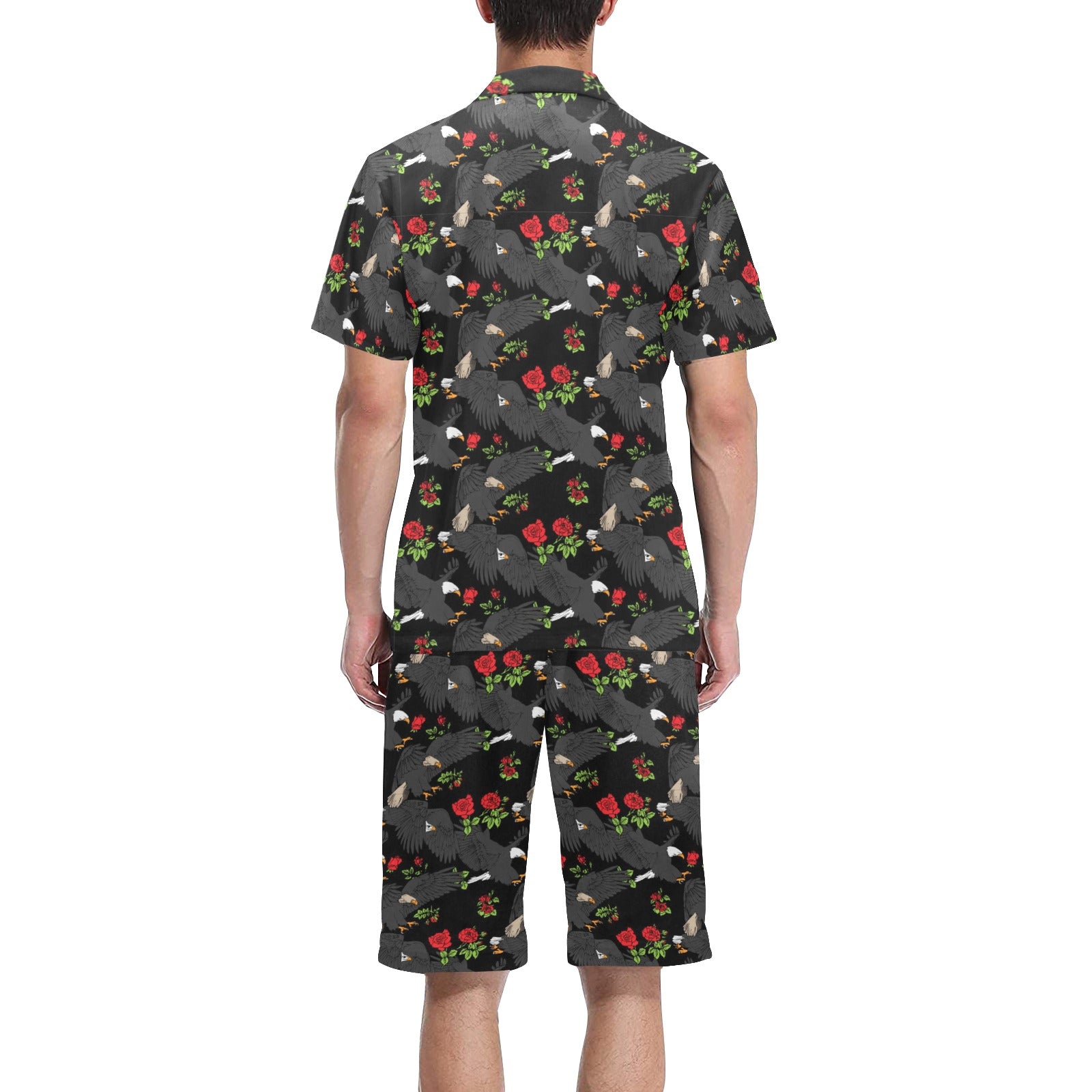 Eagle Pattern Print Design 04 Men's V-Neck Short Pajama Set