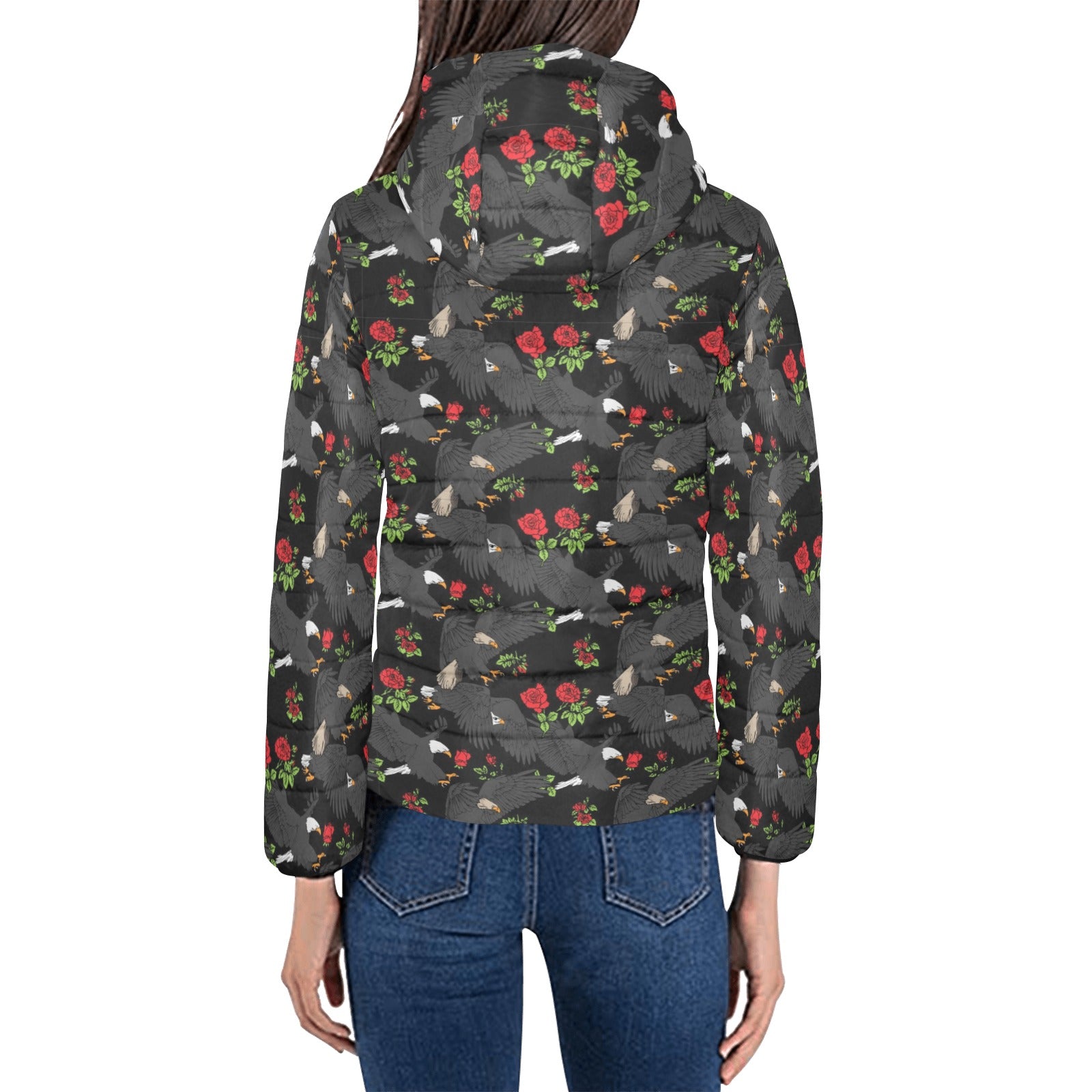 Eagle Pattern Print Design 04 Women's Padded Hooded Jacket