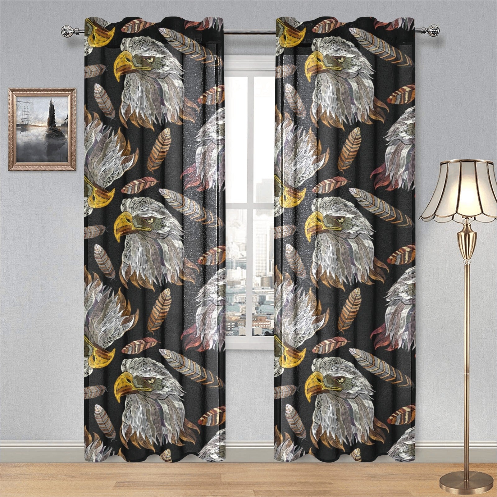 Eagle Pattern Print Design 05 Gauze Curtain