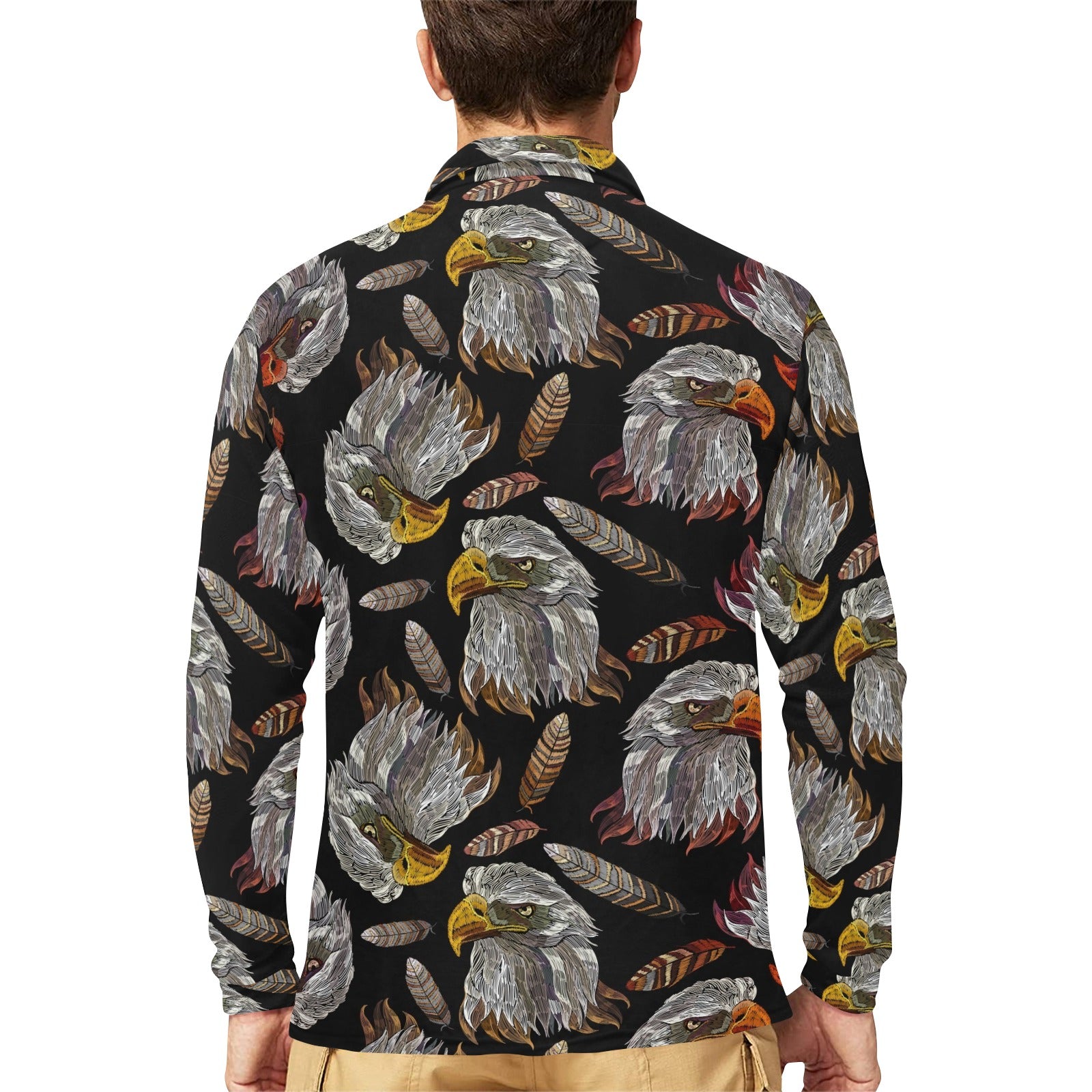 Eagle Pattern Print Design 05 Men's Long Sleeve Polo Shirt