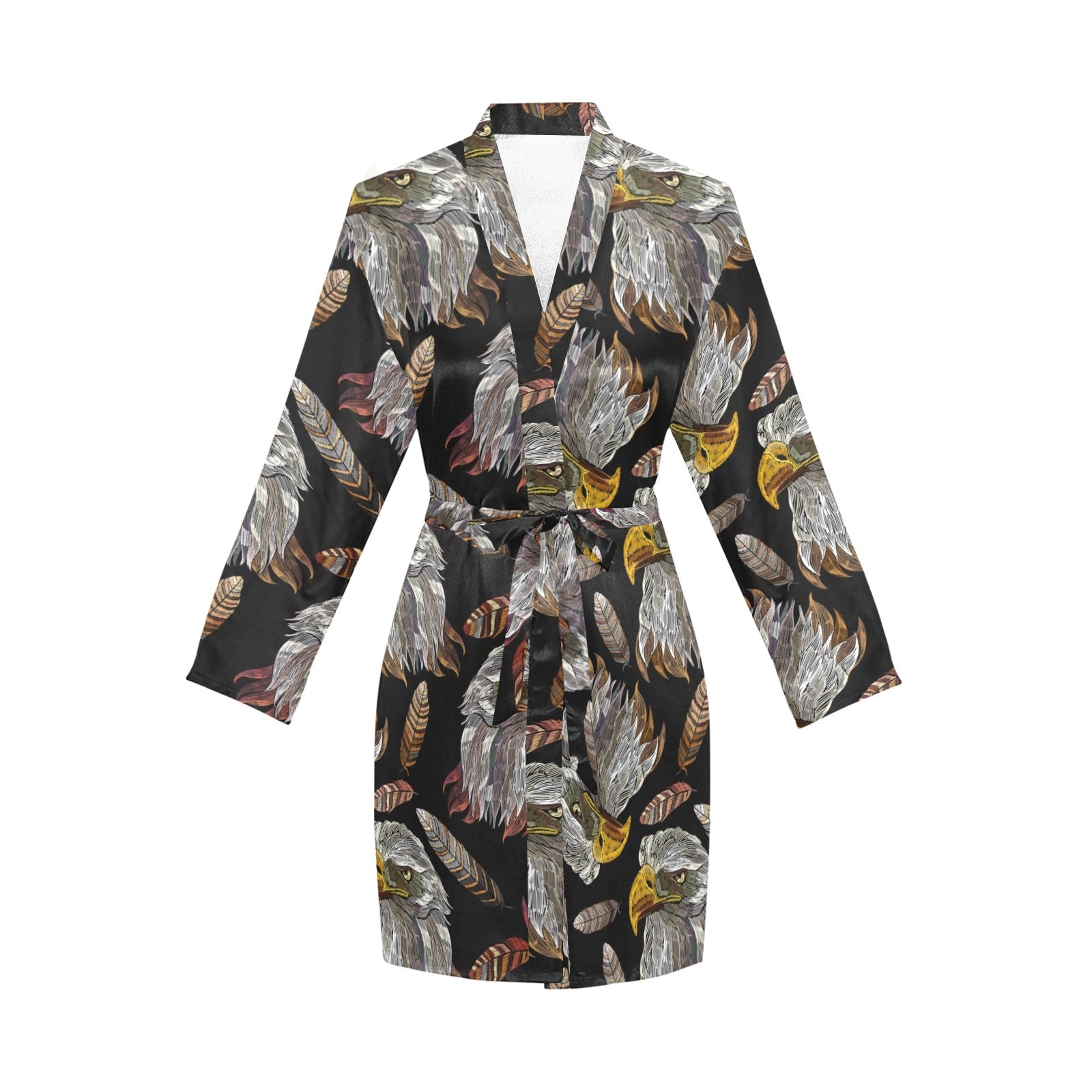 Eagle Pattern Print Design 05 Women's Long Sleeve Belted Night Robe