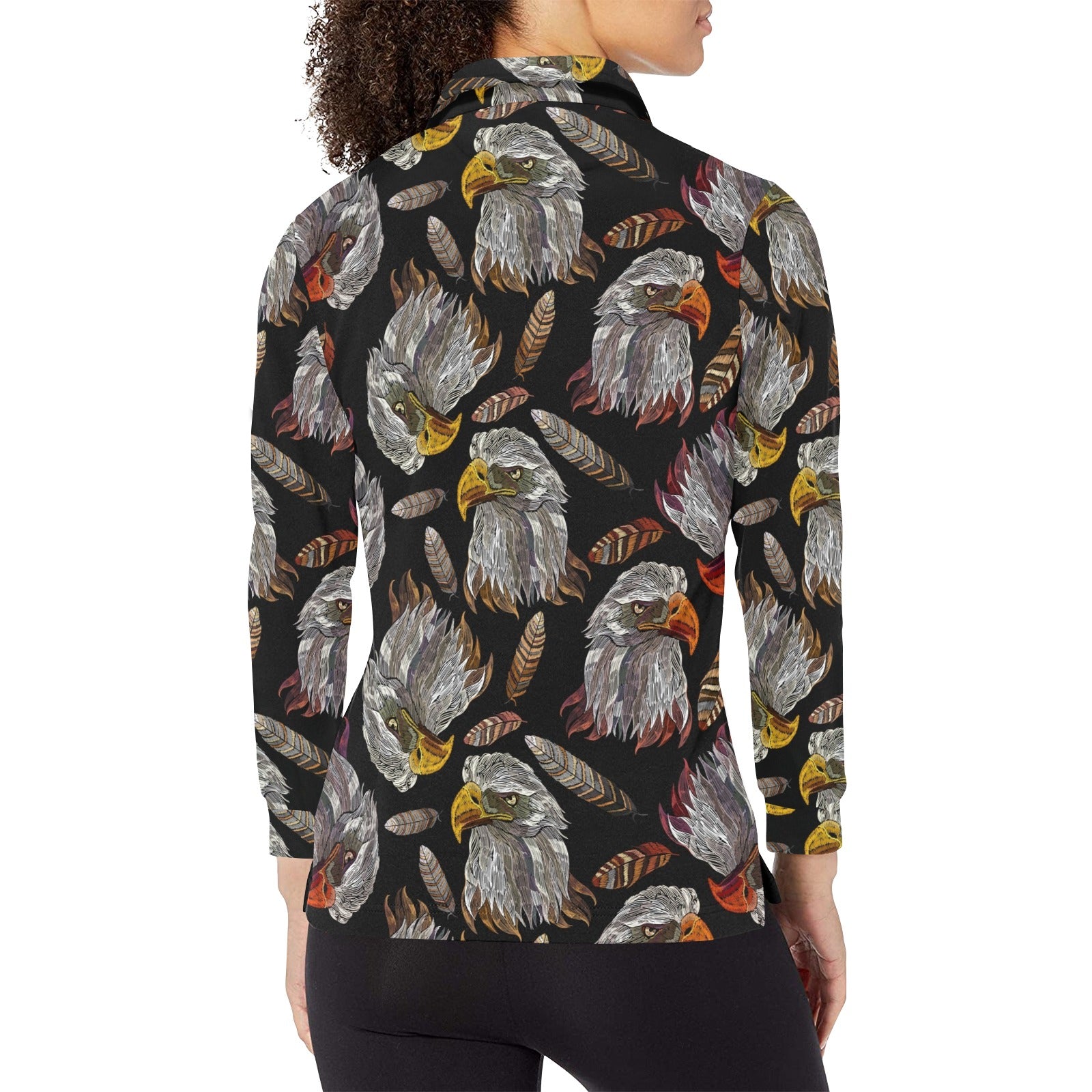 Eagle Pattern Print Design 05 Women's Long Sleeve Polo Shirt