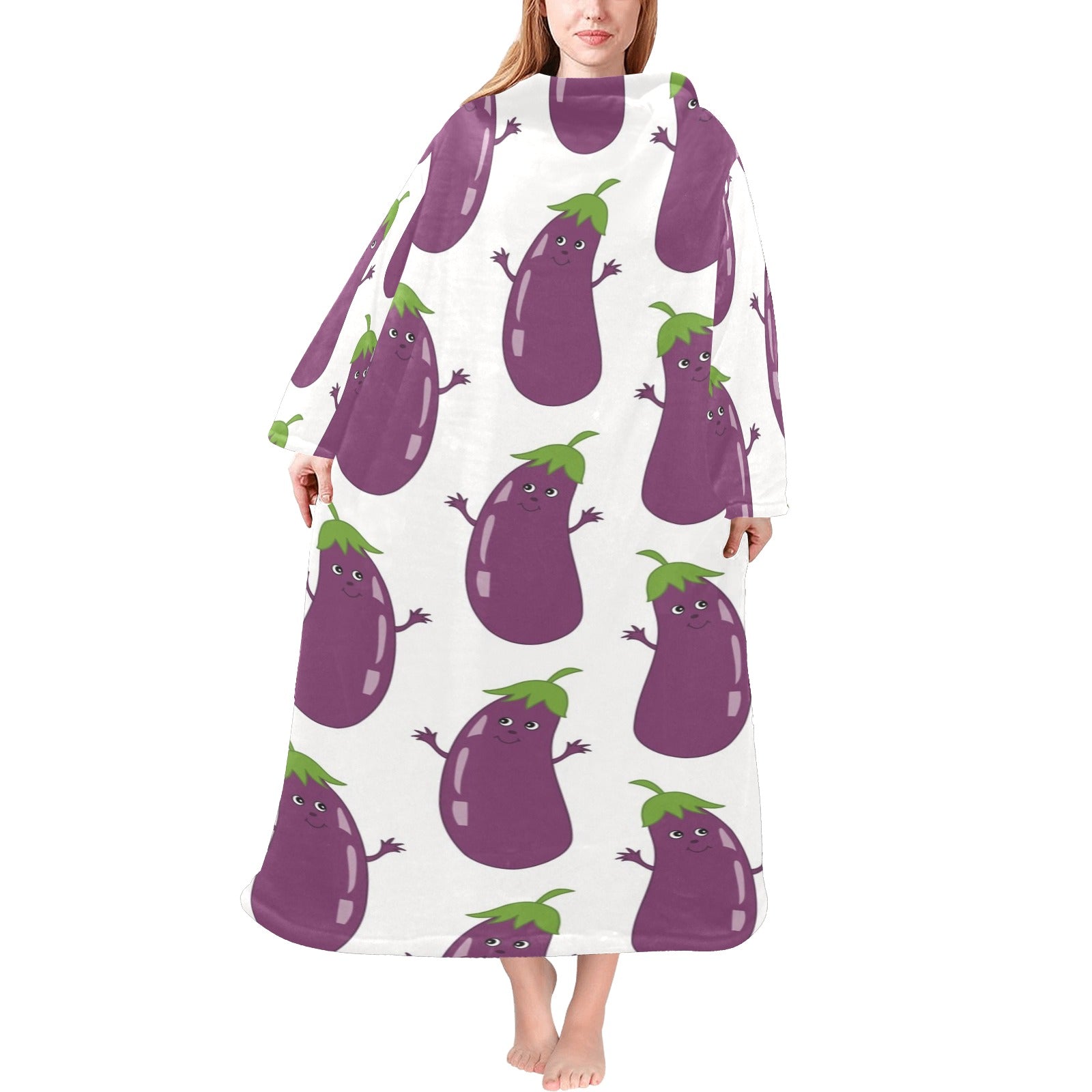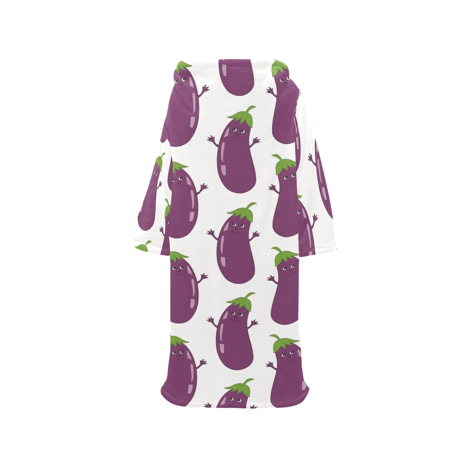 Eggplant Pattern Print Design 01 Blanket Robe with Sleeves