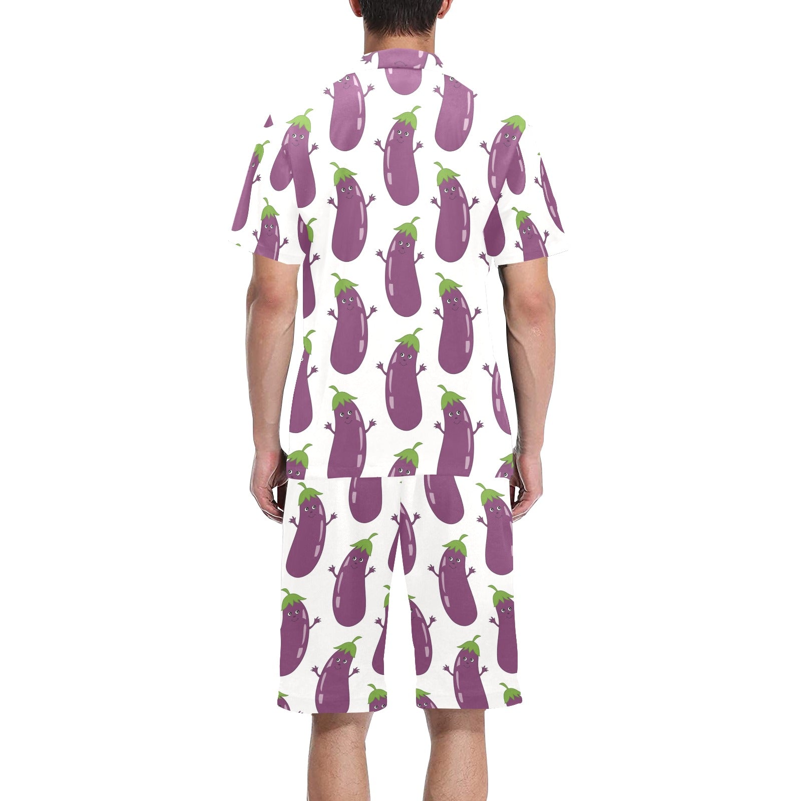 Eggplant Pattern Print Design 01 Men's V-Neck Short Pajama Set