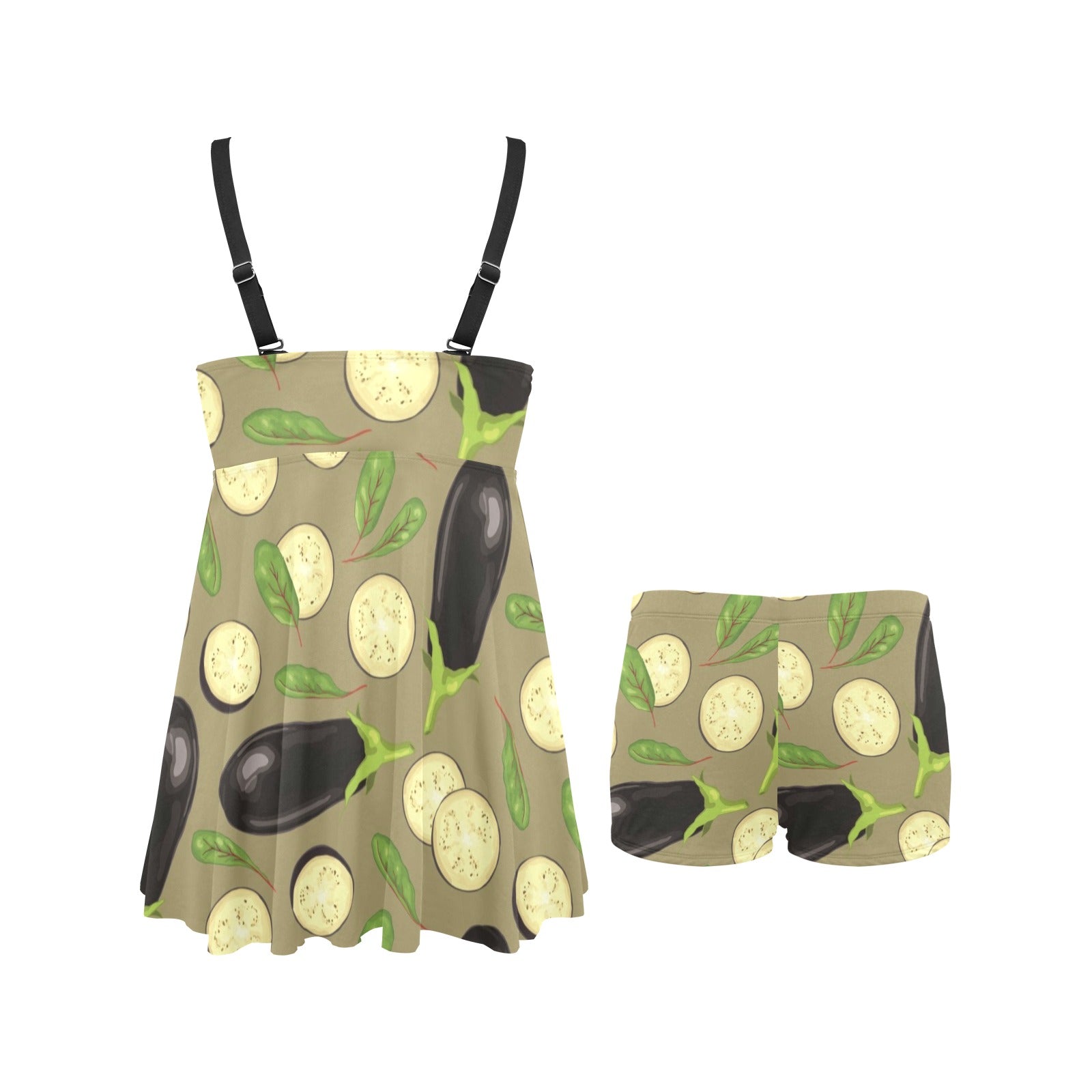 Eggplant Pattern Print Design 02 Chest Sexy Pleated Two Piece Swim Dress