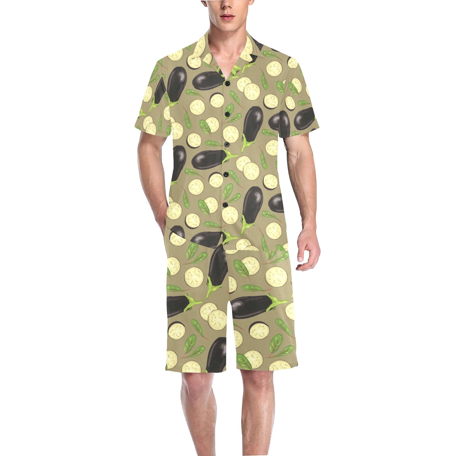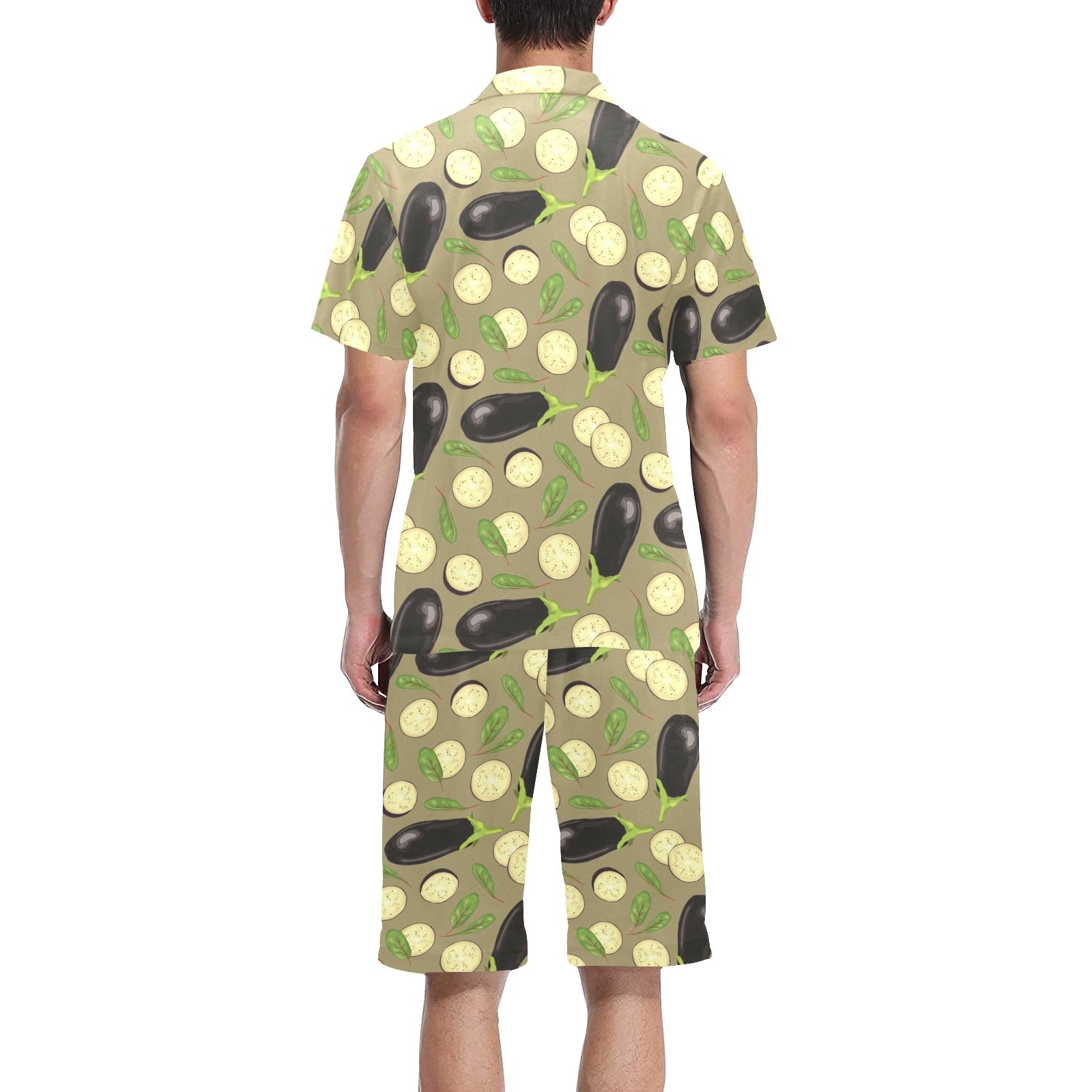 Eggplant Pattern Print Design 02 Men's V-Neck Short Pajama Set