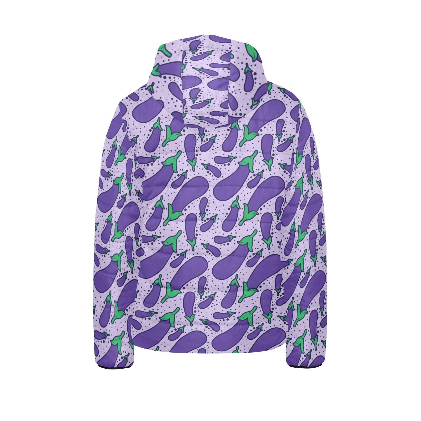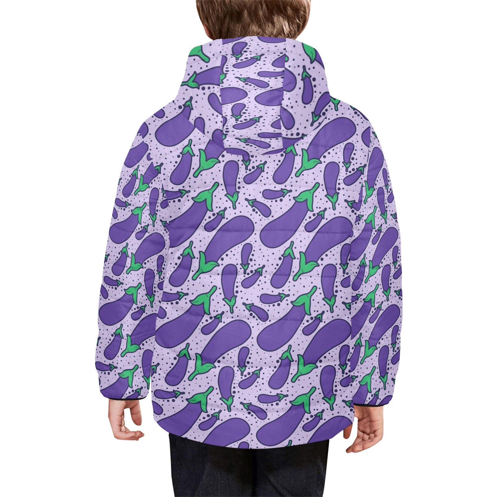 Eggplant Pattern Print Design 03 Kids' Boys' Girls' Padded Hooded Jacket