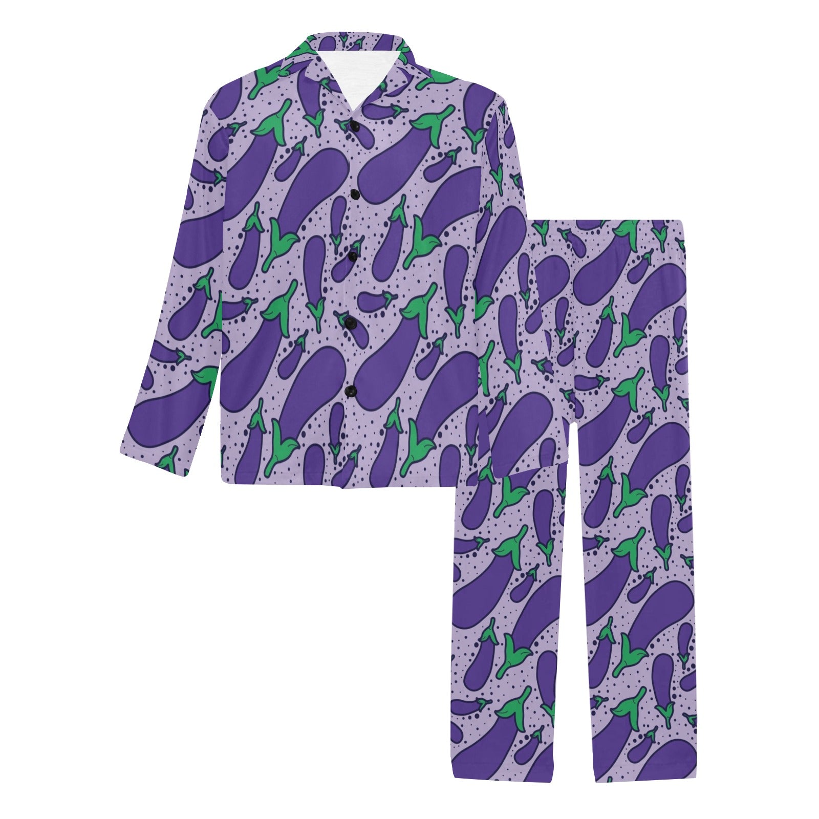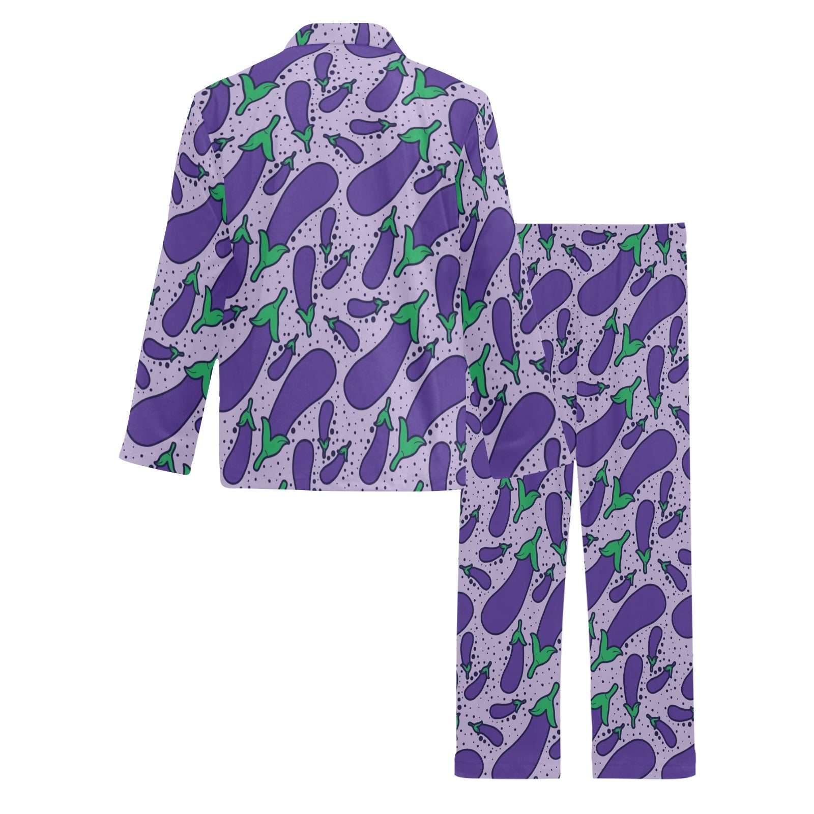 Eggplant Pattern Print Design 03 Men's Long Pajama Set