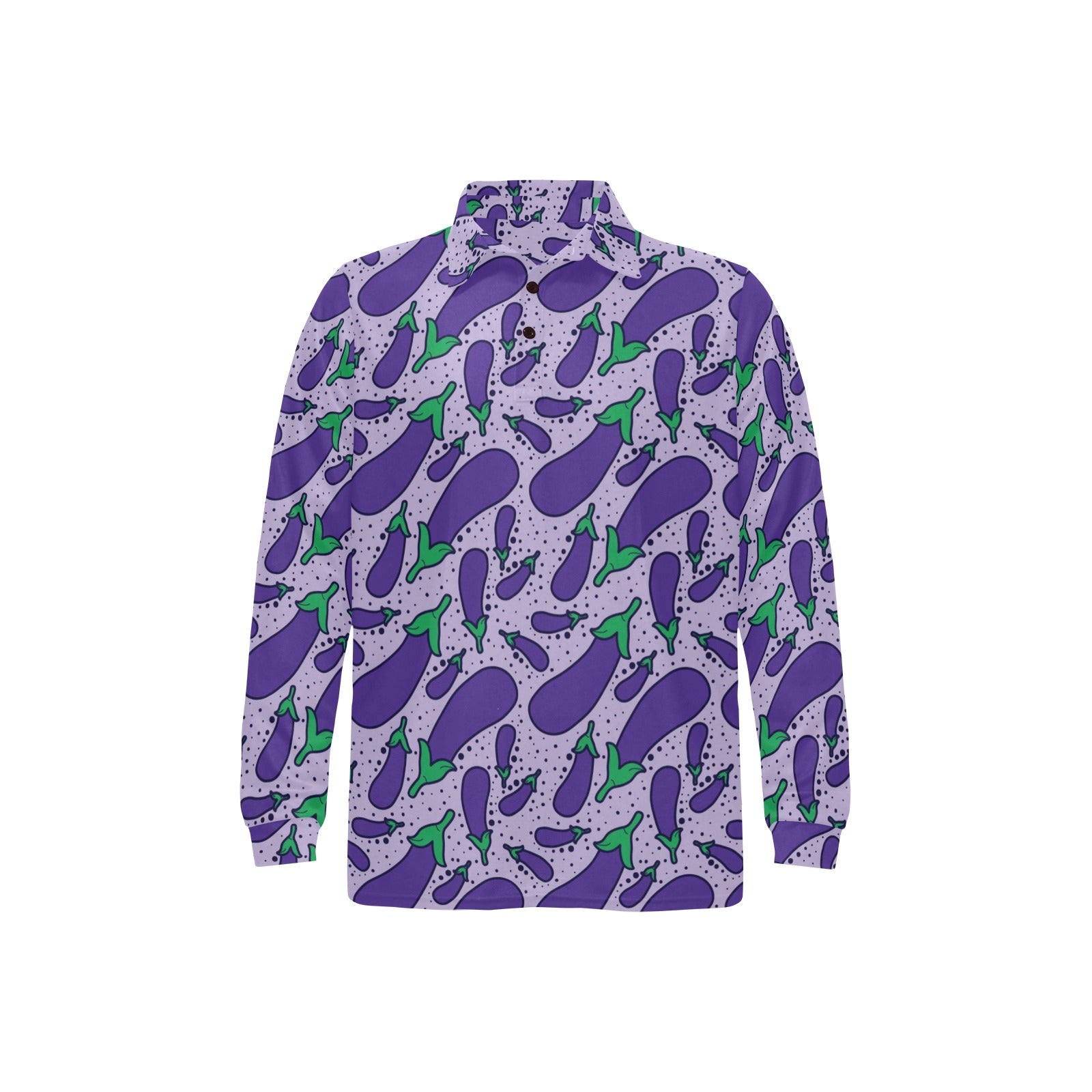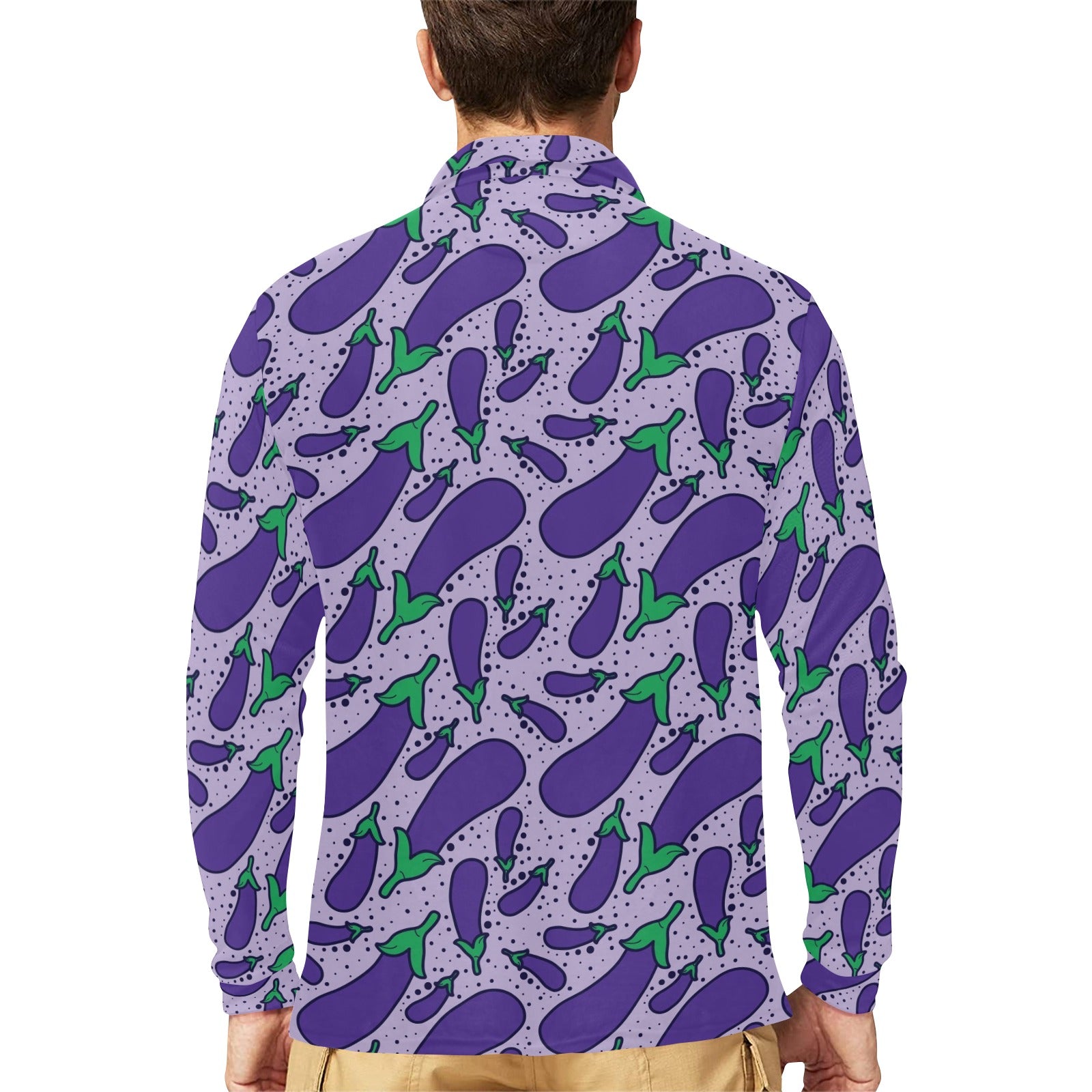 Eggplant Pattern Print Design 03 Men's Long Sleeve Polo Shirt