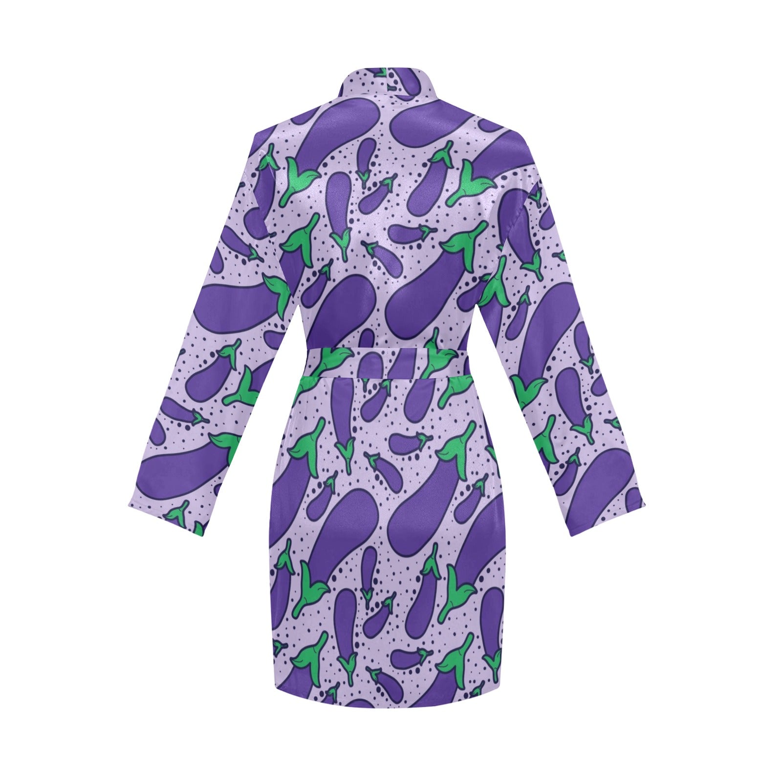 Eggplant Pattern Print Design 03 Women's Long Sleeve Belted Night Robe