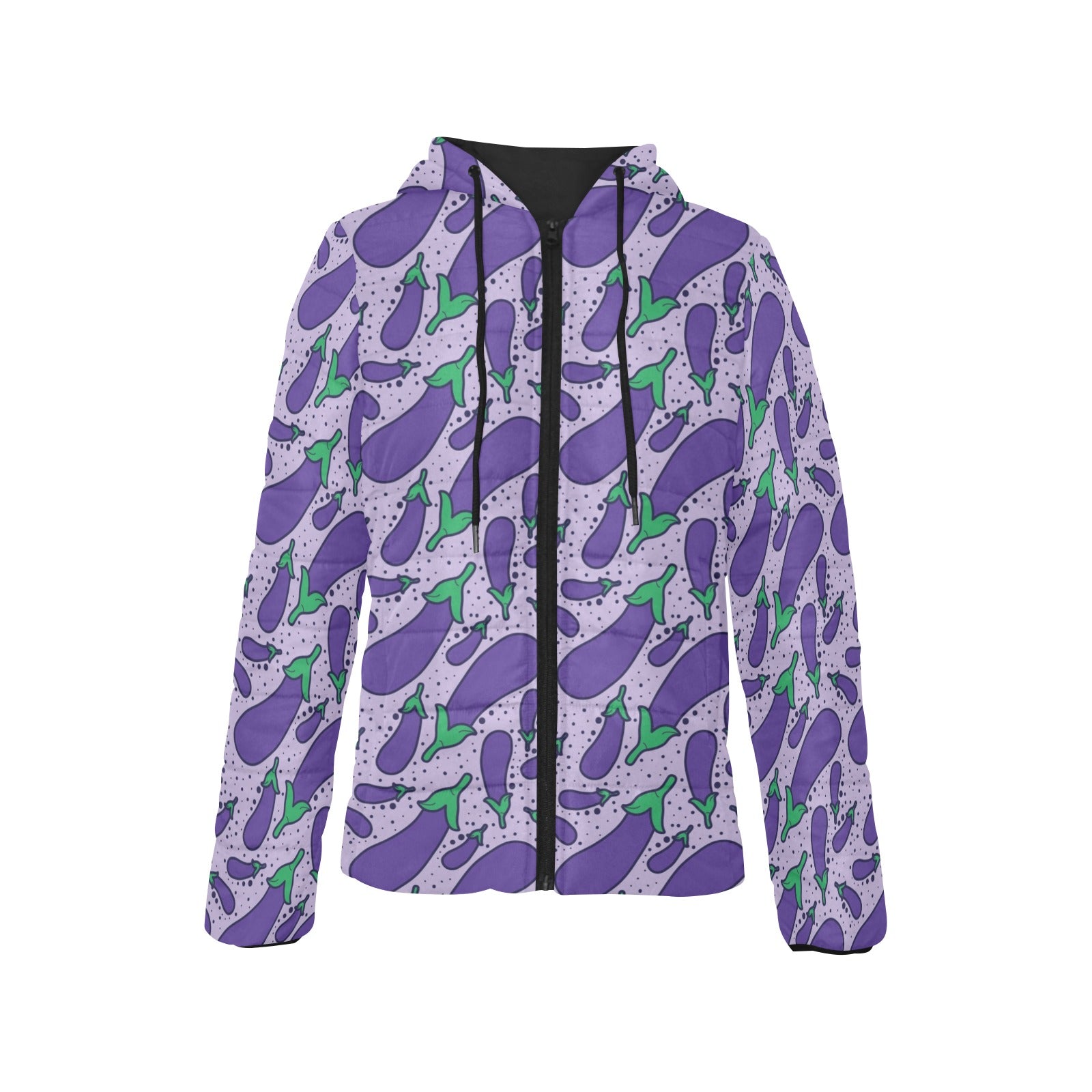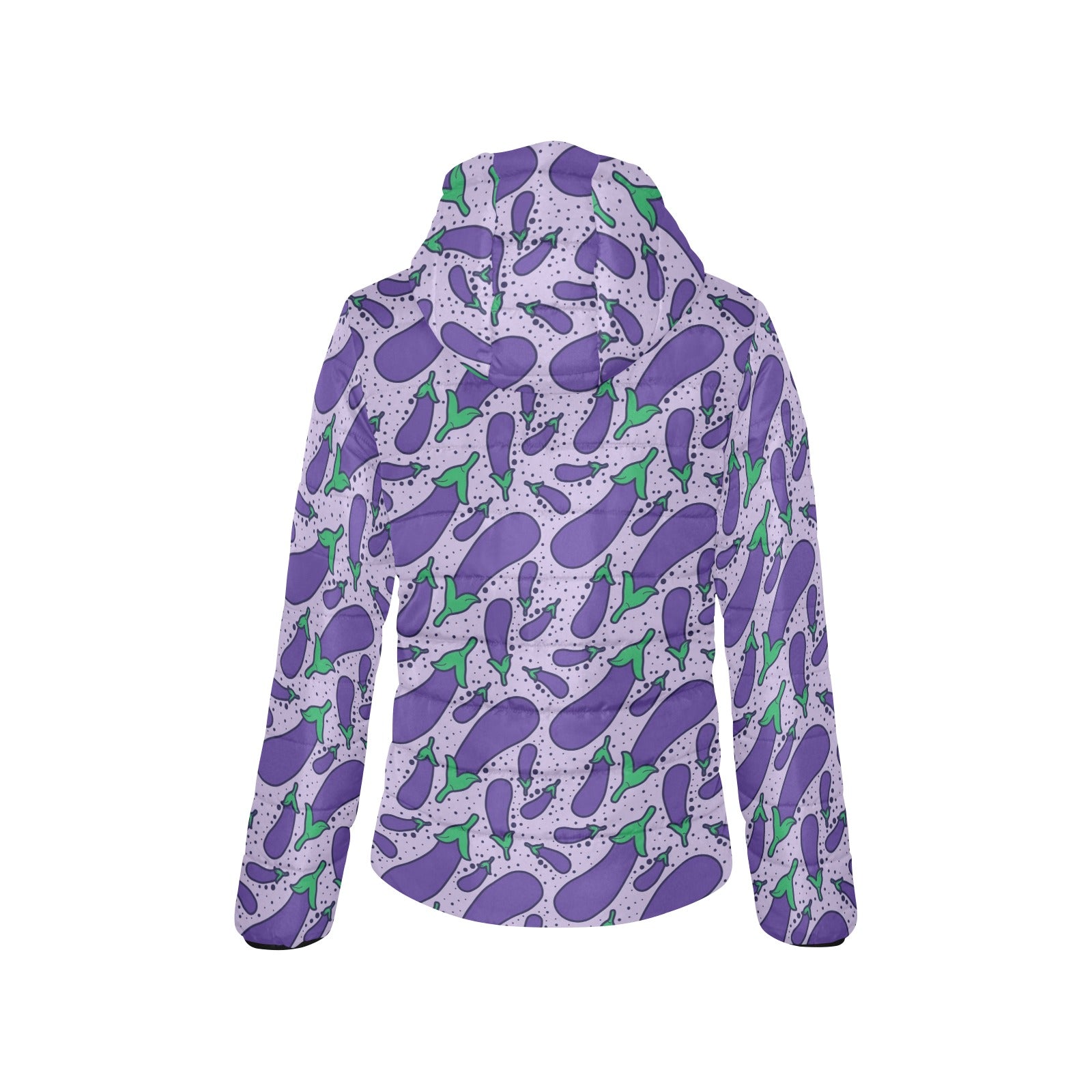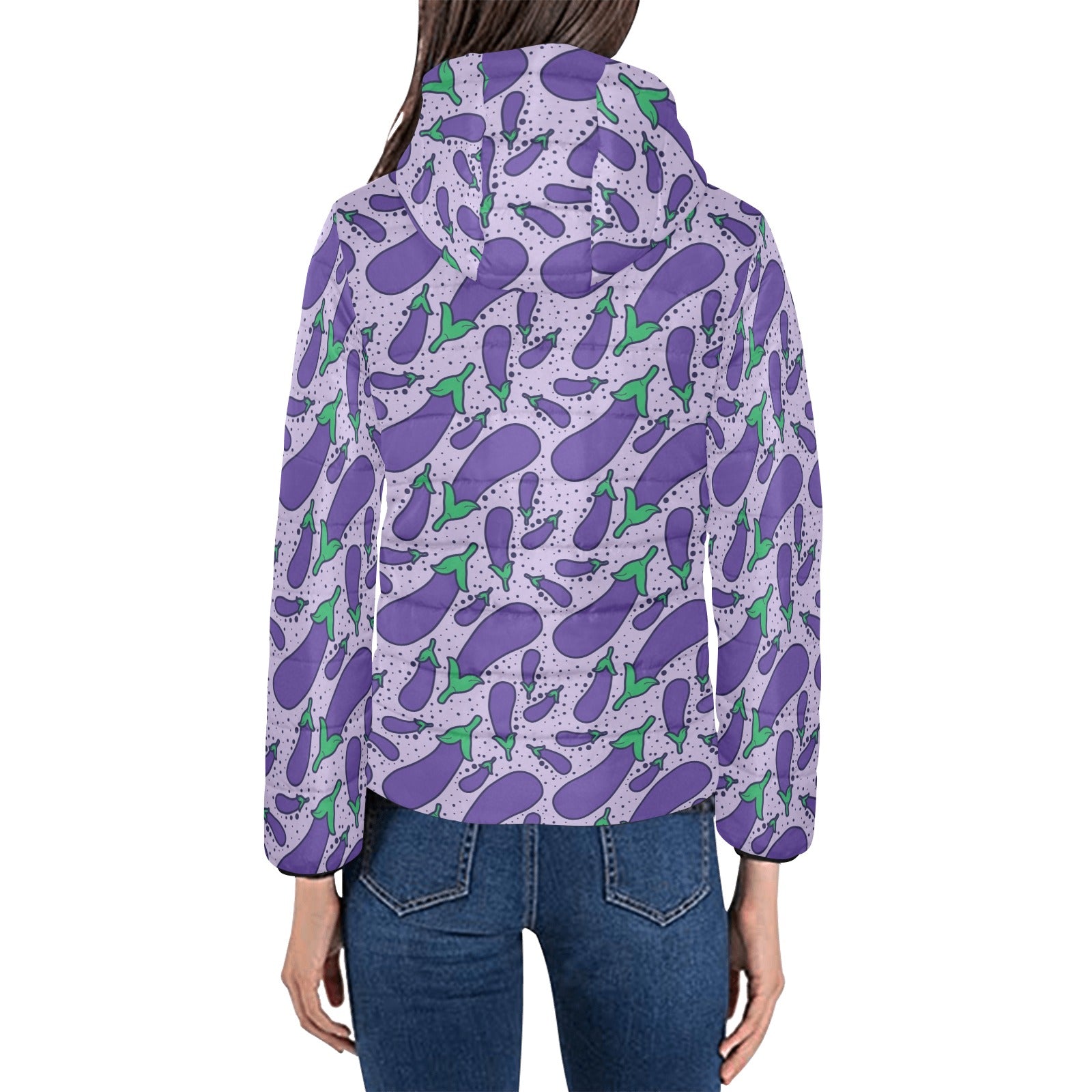Eggplant Pattern Print Design 03 Women's Padded Hooded Jacket