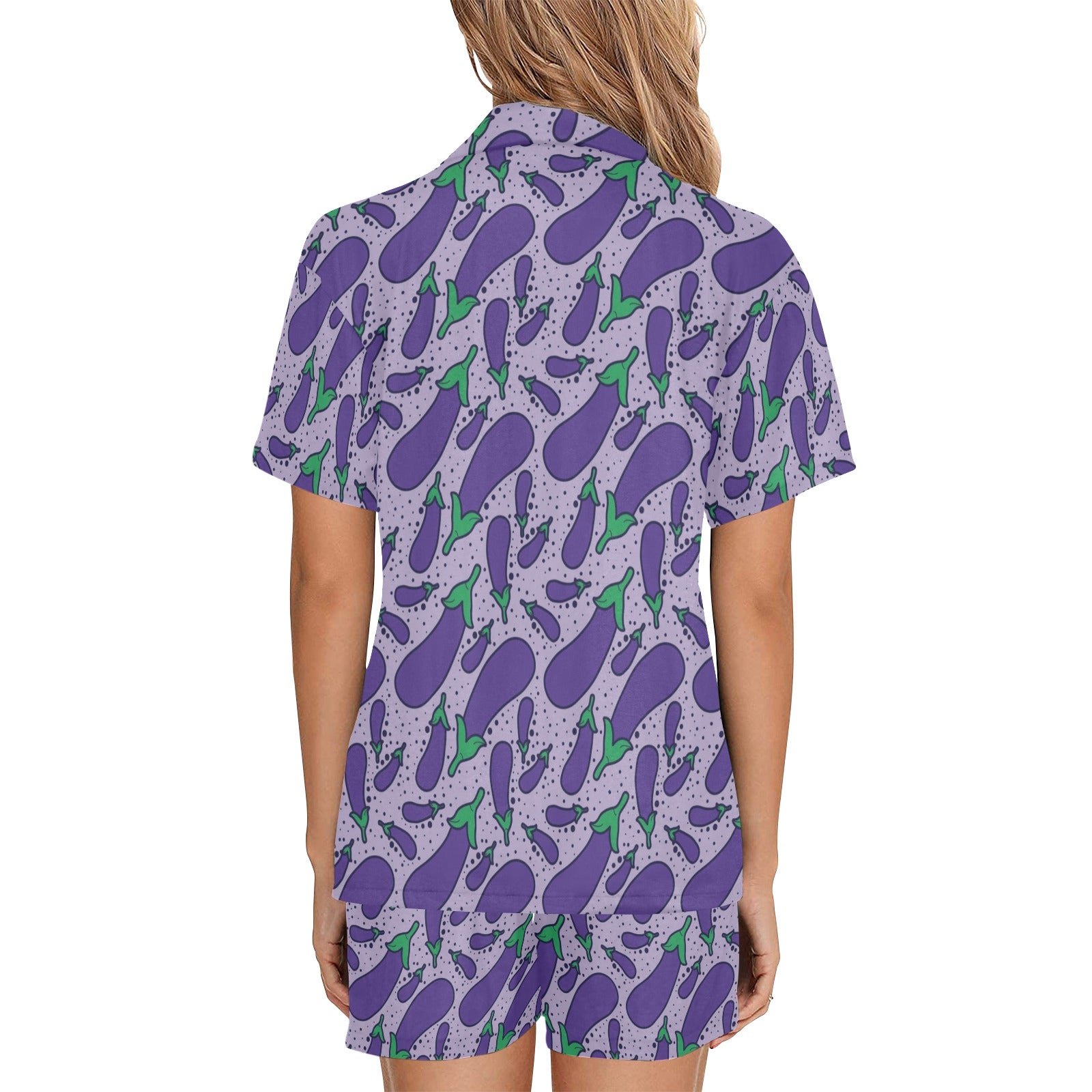 Eggplant Pattern Print Design 03 Women's V-Neck Short Pajama Set