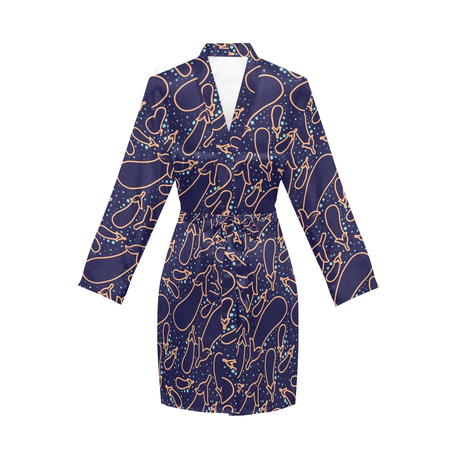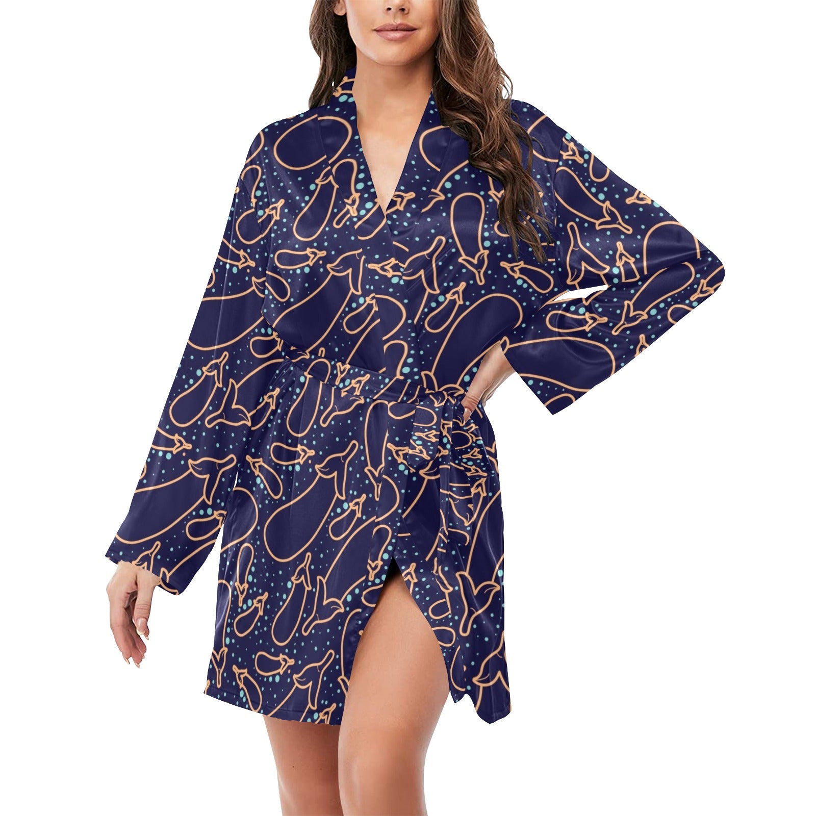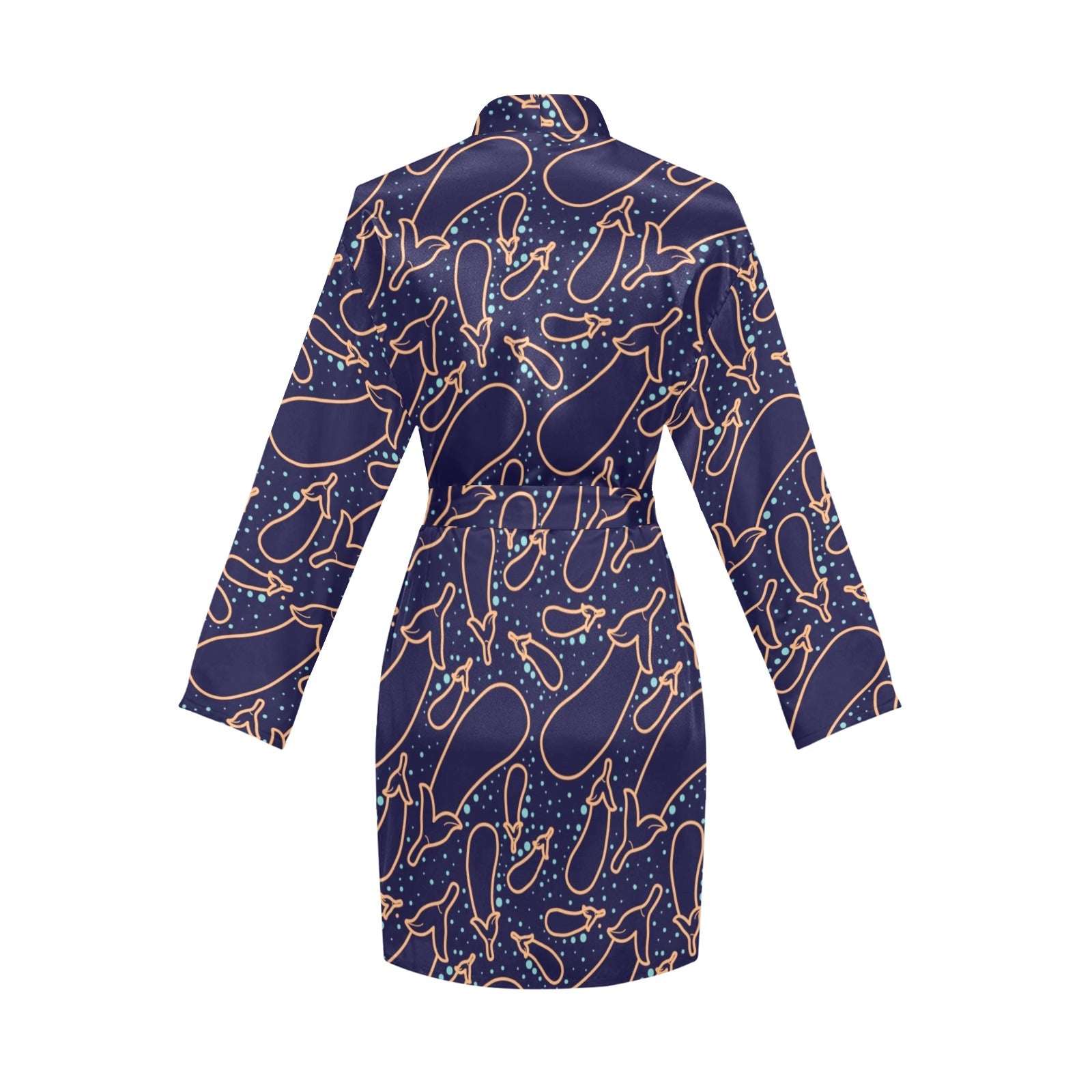 Eggplant Pattern Print Design 04 Women's Long Sleeve Belted Night Robe