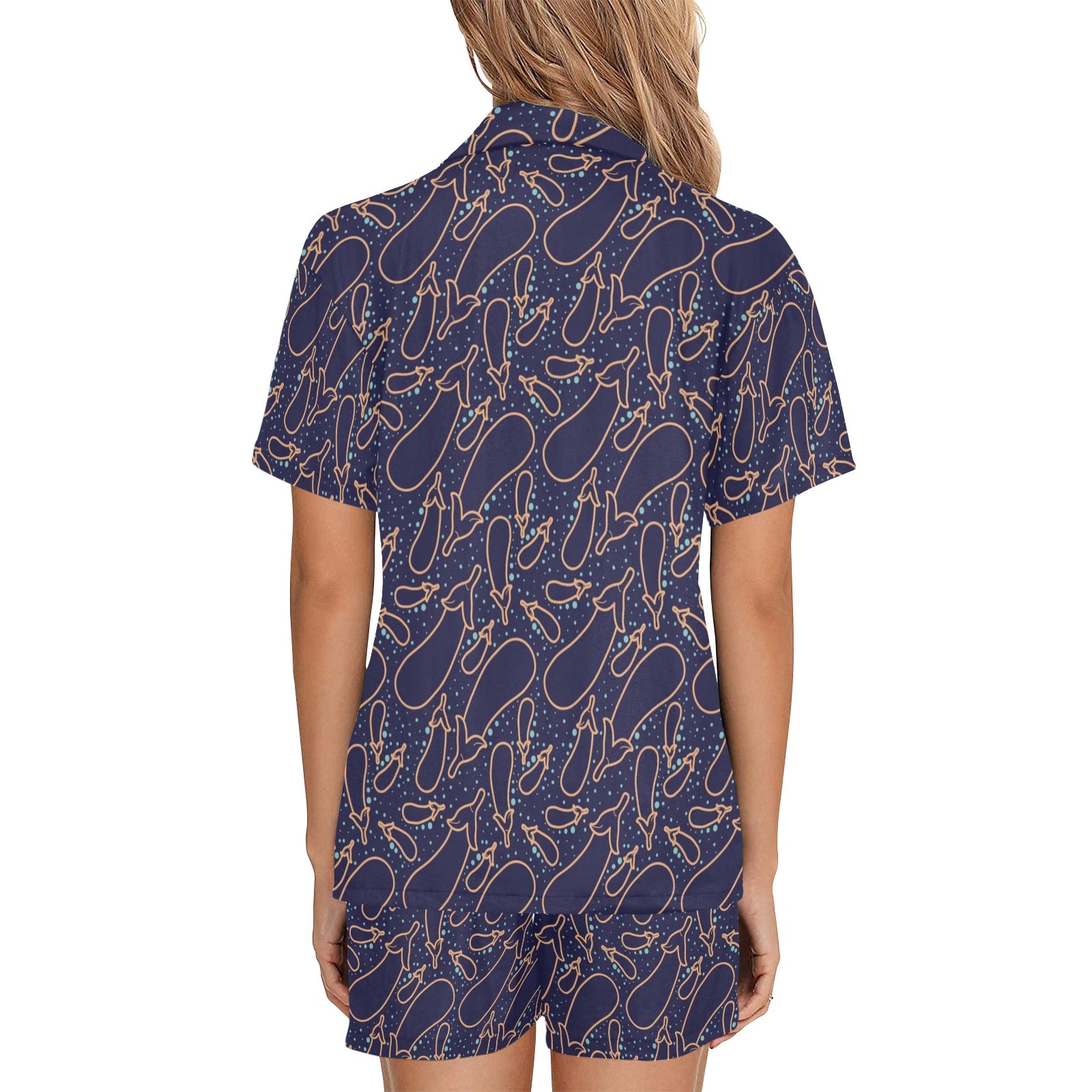 Eggplant Pattern Print Design 04 Women's V-Neck Short Pajama Set