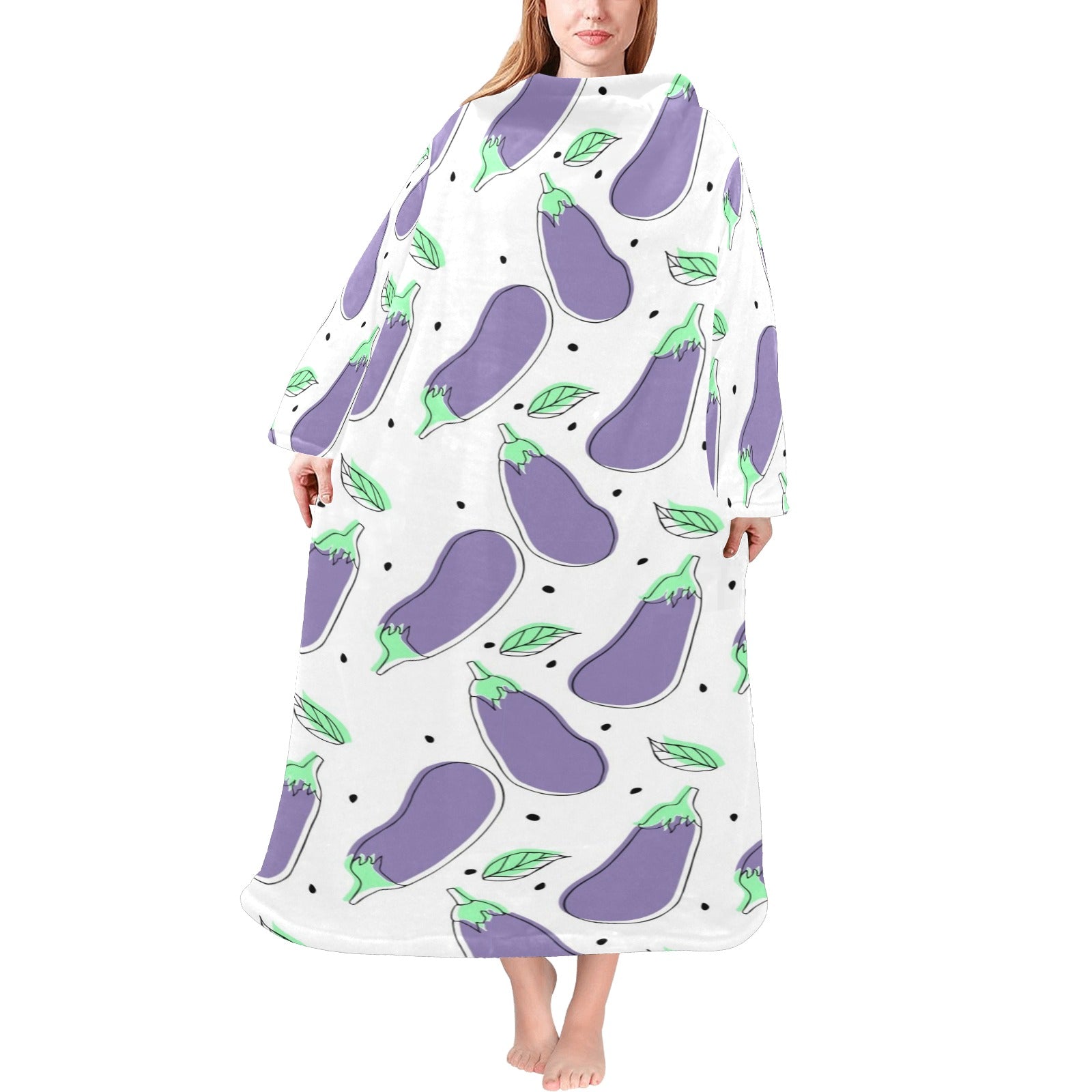 Eggplant Pattern Print Design 05 Blanket Robe with Sleeves