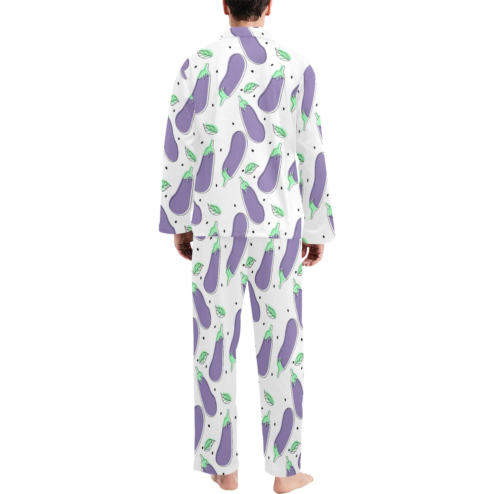 Eggplant Pattern Print Design 05 Men's Long Pajama Set